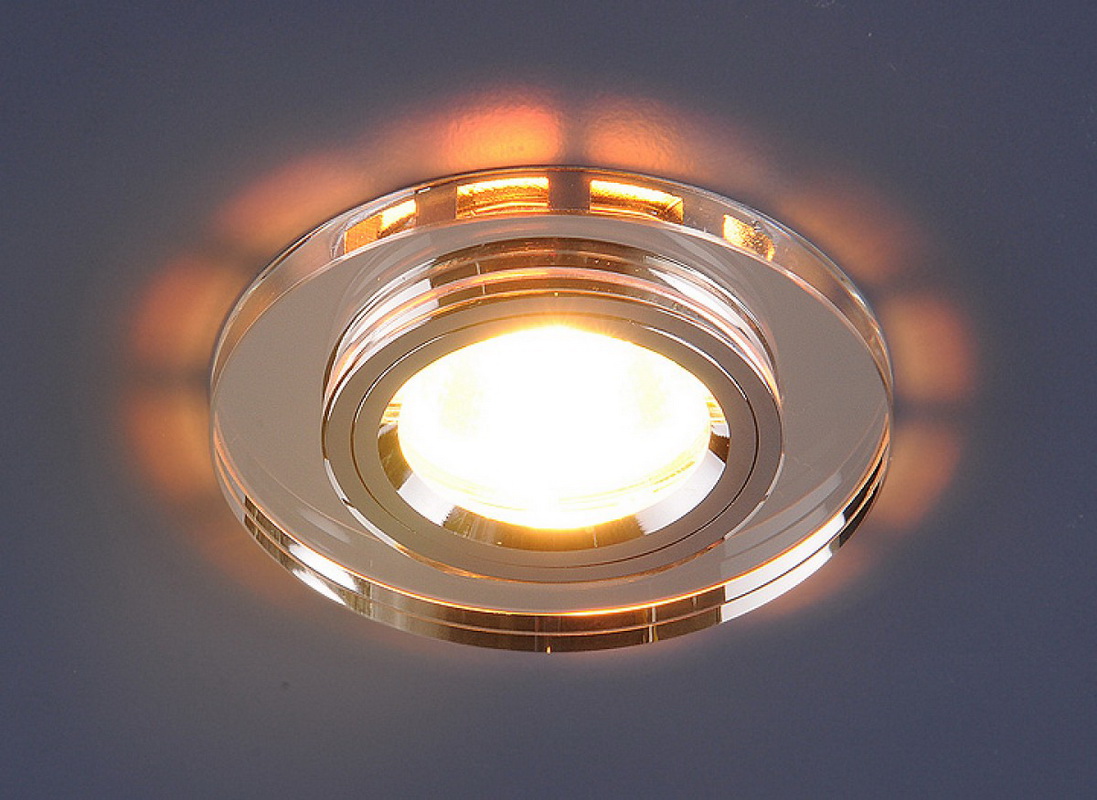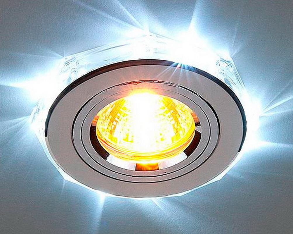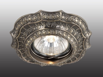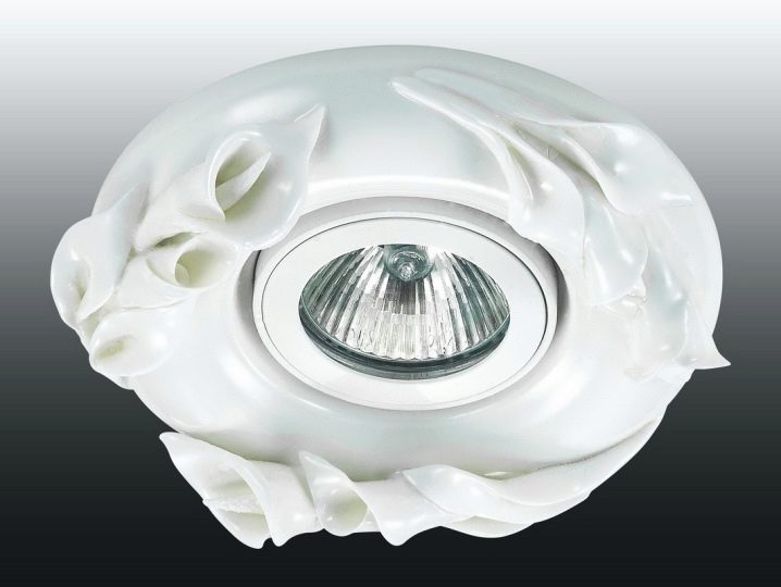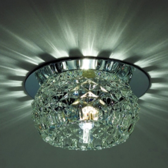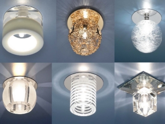- Teilweise eingebettet - auf 2/3 montiert, so dass ein Teil des Körpers ein wenig auf der Oberfläche des Flugzeugs hervorsteht. Solche Lampen haben normalerweise einen schönen Körper, der die Rolle eines zusätzlichen Dekors spielt und die Beleuchtung aufgrund von Reflexionsfähigkeiten verbessert.