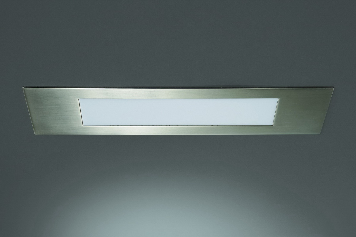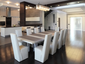 Rechteckige Befestigungen Kombinieren Sie die positiven Eigenschaften der quadratischen und individuellen Merkmale. Ihr Hauptunterschied ist die längliche Form, die nicht mehr universal genannt werden kann. Mit ihrer Hilfe können Sie den Raum vollständig ausleuchten und seine Form visuell verändern. Wenn Sie zum Beispiel rechteckige Lampen entlang der langen Seite des Raums platzieren, wird das Aussehen noch länglicher, und wenn es sich in Querrichtung befindet, wird es in der Form dem Quadrat näher sein. Zu den Vorteilen gehören auch: