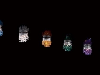 Es gibt mehrere Möglichkeiten, Farbe auf das fertige Gehäuse der Beleuchtungseinrichtung aufzubringen - Galvanisieren und Lackieren. Das Färben geschieht wiederum manuell und maschinell. Die Wahl der Methode bestimmt das Endergebnis und die Kosten des Produkts. Galvanisieren (oder Verchromen) wird verwendet, wenn es notwendig ist, die Teile glatt, glänzend und reflektierend zu machen. Für einige dekorative Elemente kann es mit speziellen Bürsten oder Sandstrahlen stumpf gemacht werden.Muster. Galvanisieren bietet mehrere Primärfarben, die teurere Materialien nachahmen: Rosa und Gelbgold, antike Bronze, Chrom, Kupfer.