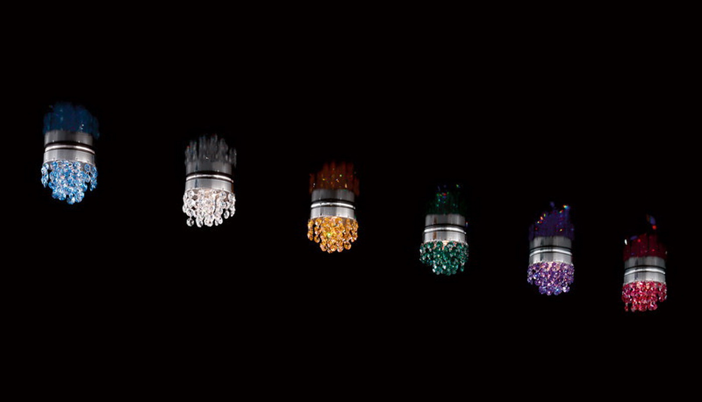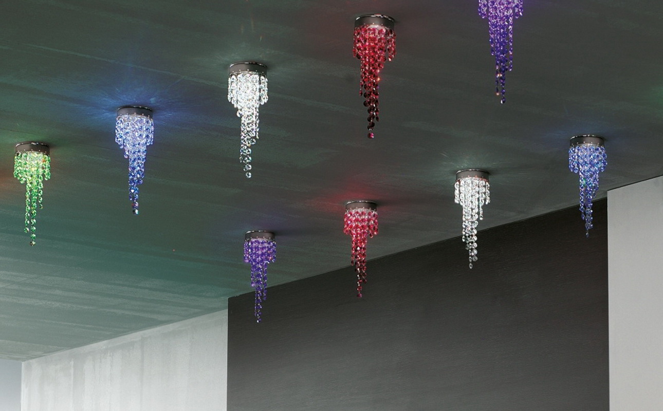 - "Spiegeln". Die Ansammlung dieser Strahler in Kristalllampenschirmen erzeugt die Illusion von funkelnden Sternen am Himmel.