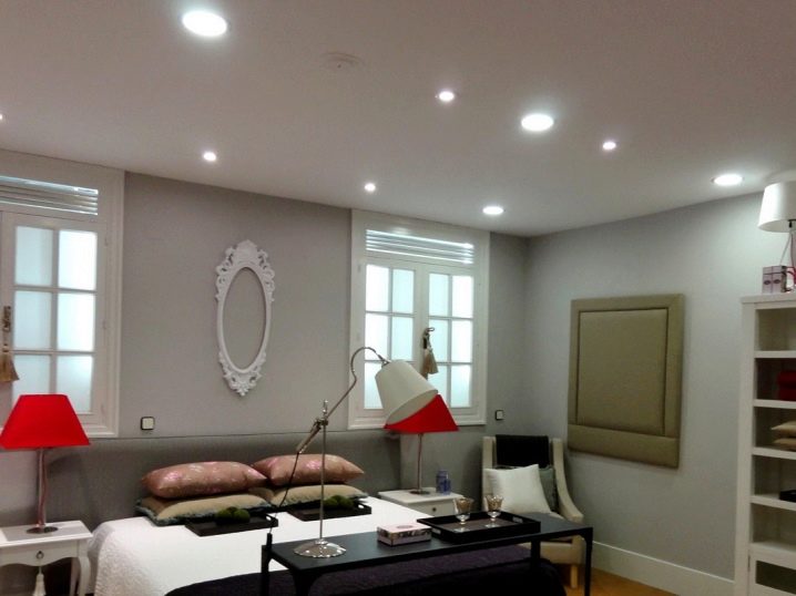 Signifikante Mängel in dieser Art von Beleuchtung werden nicht offenbart, aber es gibt einige Nuancen, die es wert sind, beachtet zu werden. Zuallererst ist es die Irrationalität der Verwendung von Flecken, besonders mit Glühlampen, mit einer geringen Deckenhöhe. In der Regel werden sie in Spanndecken montiert und dies erfordert die Installation von Spannplatten 6-16 Zentimeter unter dem Niveau der bestehenden Decke. Bei einer Höhe von 3 Metern ist dieser Abstand unbedeutend, aber bei 2,5-2,7 m besteht die Gefahr, dass die überhängende, zu tief liegende Decke ein Gefühl von Überdruss bekommt.