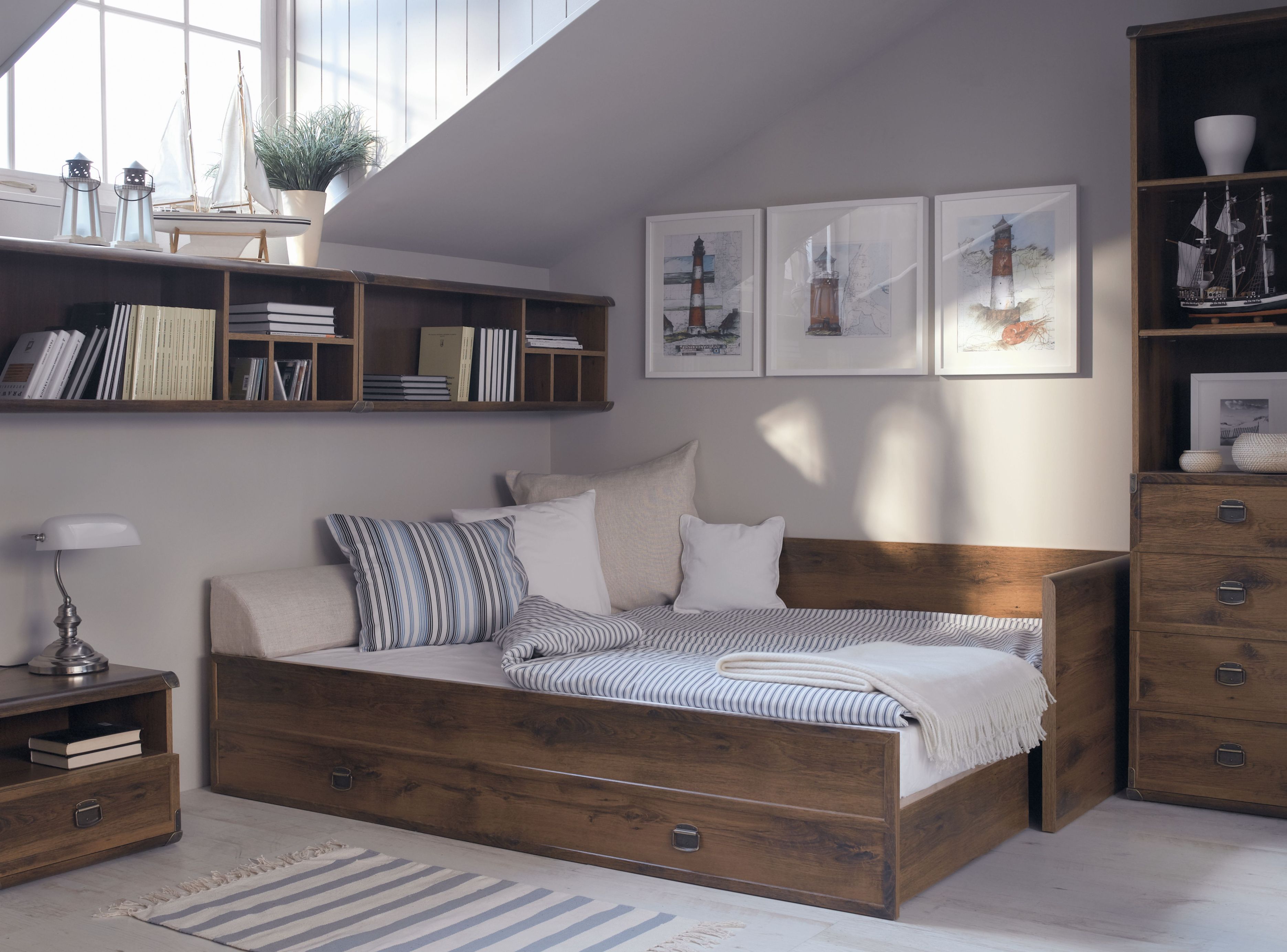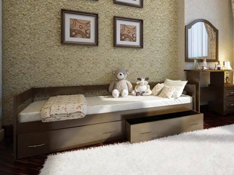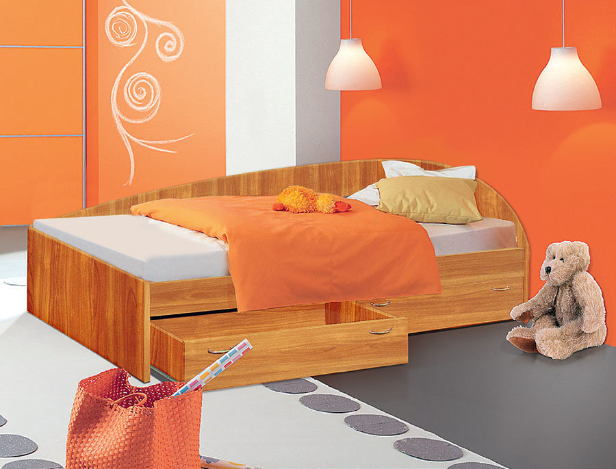 Komfortable Wäschefächer helfen Ihnen, den Platz optimal zu organisieren und die Bettwäsche zu falten. Dies wird helfen, das Kind zu lehren.