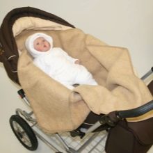 Auch können die Decken für das Gehen in einem Spaziergänger eine quadratische Form haben, es ist sehr bequem, weil es möglich sein wird, das Kind darin leicht nach dem Spaziergang einzuwickeln.