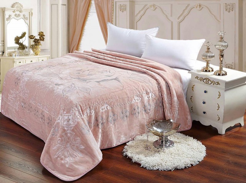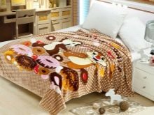 Die Beschaffenheit dieser Art von Decken kann auch unterschiedlich sein. Hier kann der Flor in einer bestimmten Art und Weise geschnitten werden, die eine Imitation von Tierschwänzen, Monogrammen und Blumen bildet, sie können völlig glatt sein oder eine originale Naht aufweisen.
