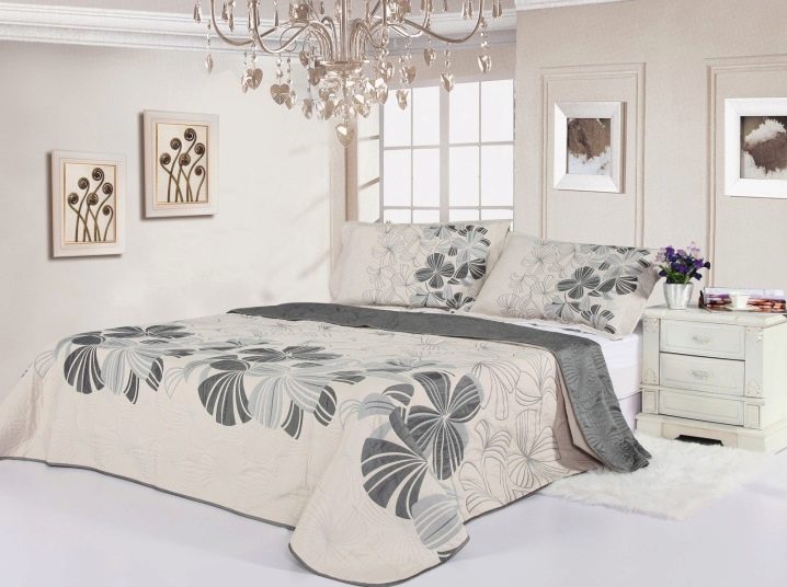 Es lohnt sich auch, eine Farbe zu wählen, die dem Innenraum des Raumes entspricht. Es ist gut, wenn es möglich ist, es mit anderen textilen Elementen des Raumes, zum Beispiel Kissen oder Vorhängen, zu unterstützen. Darüber hinaus sollte die Farbe der Tagesdecke davon abhängen, auf welcher Seite die Fenster im Raum stehen.Wenn dies die Südseite ist, ist es besser, kalte Töne zu bevorzugen. Wenn der Norden, dann warme Farbtöne Komfort im Schlafzimmer hinzufügen können.