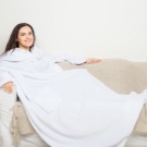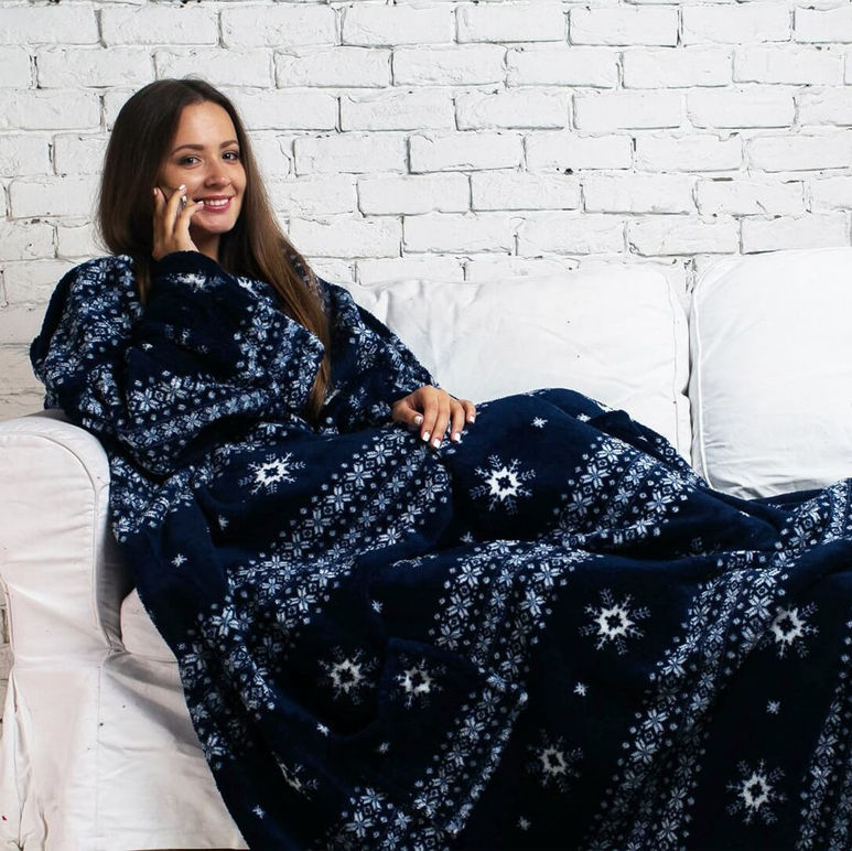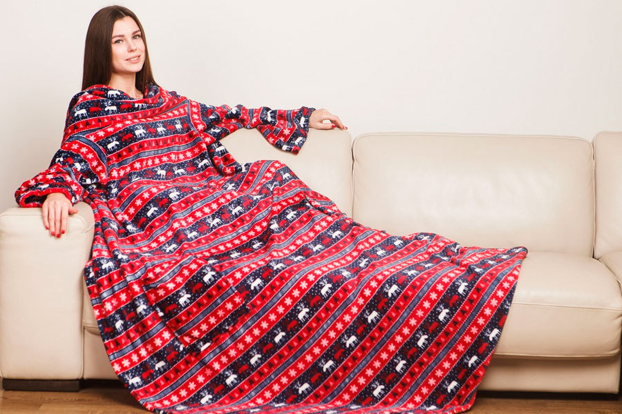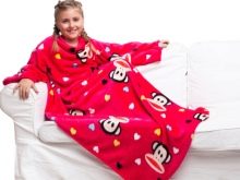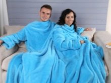 - Vielseitige Größe. Erwachsene Decken mit Ärmeln sind in ziemlich großen Größen erhältlich. Das gleiche Produkt kann wiederum von mehreren Familienmitgliedern verwendet werden.Eine solche Decke wird sowohl einem zerbrechlichen Mädchen als auch einem großen Mann passen. Wie für Kindermodelle, decken sie auch eine breite Palette von Alter ab.