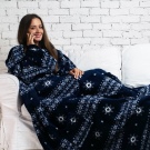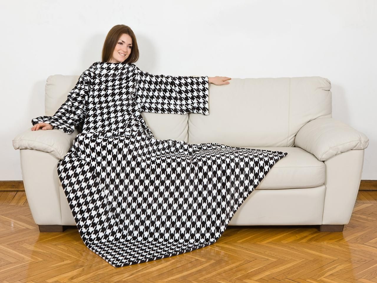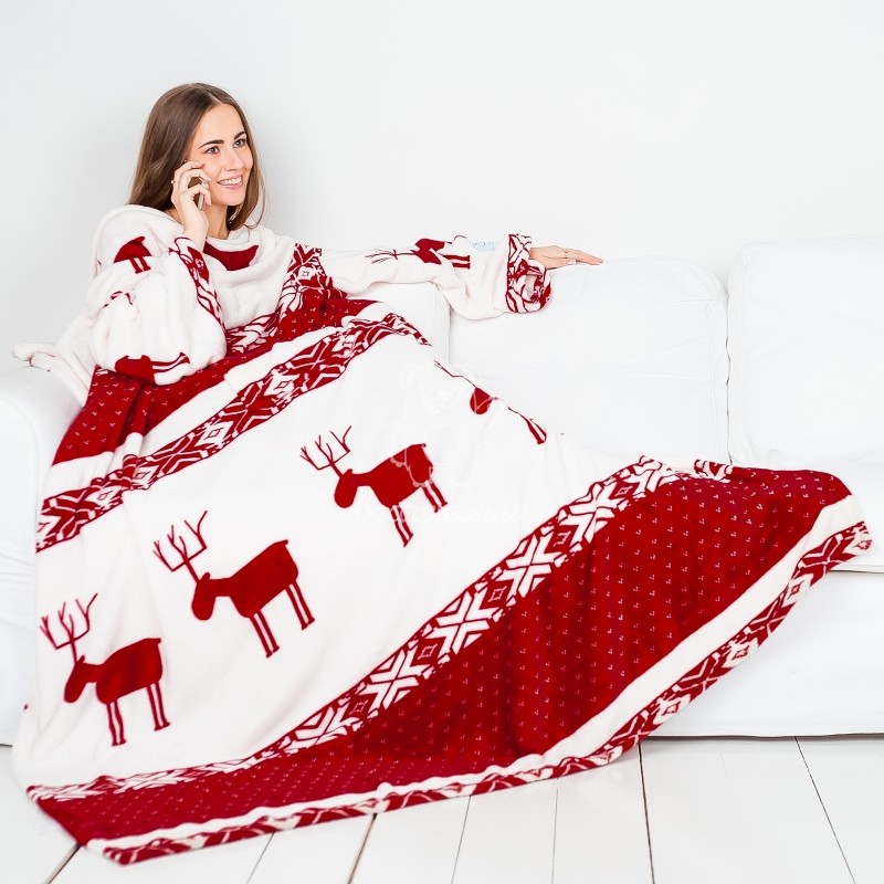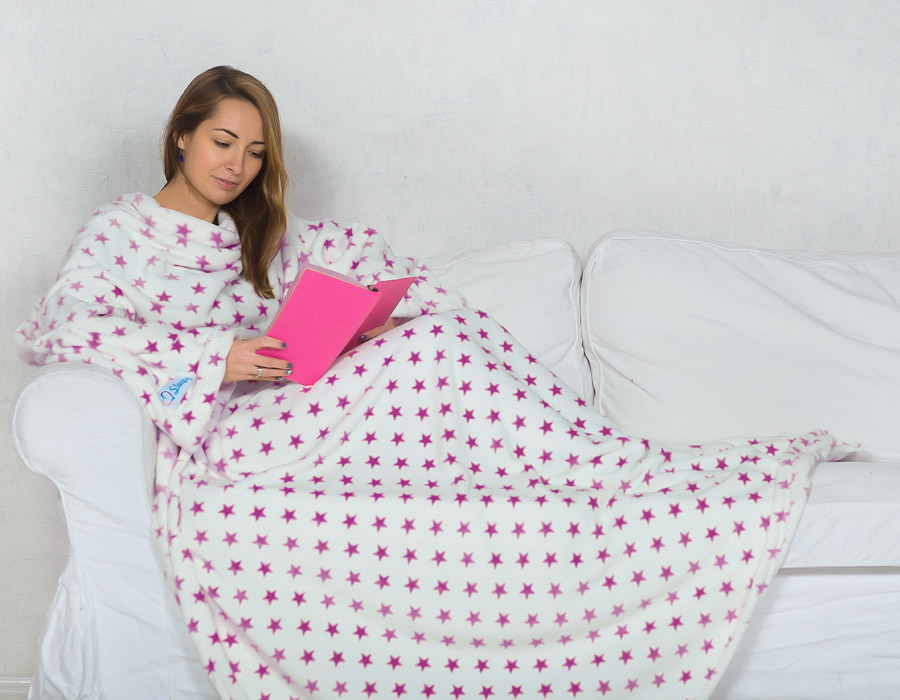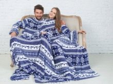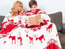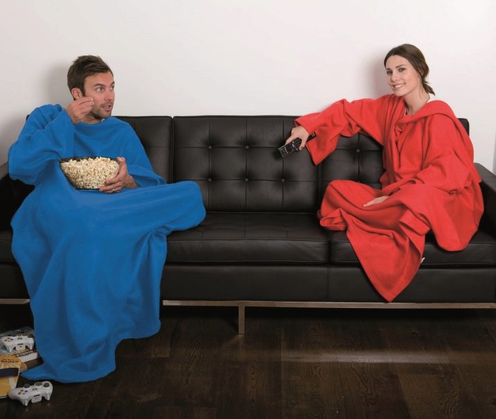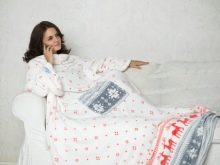 - Klassisch. Diese Option ist eine normale Decke mit angenähten Ärmeln. Es ist entworfen, um auf der Couch oder auf dem Stuhl zu entspannen. In so einer Decke mit Armen und Beinen gewickelt, können Sie Fernsehen, Lesen oder andere interessante Aktivitäten genießen.
