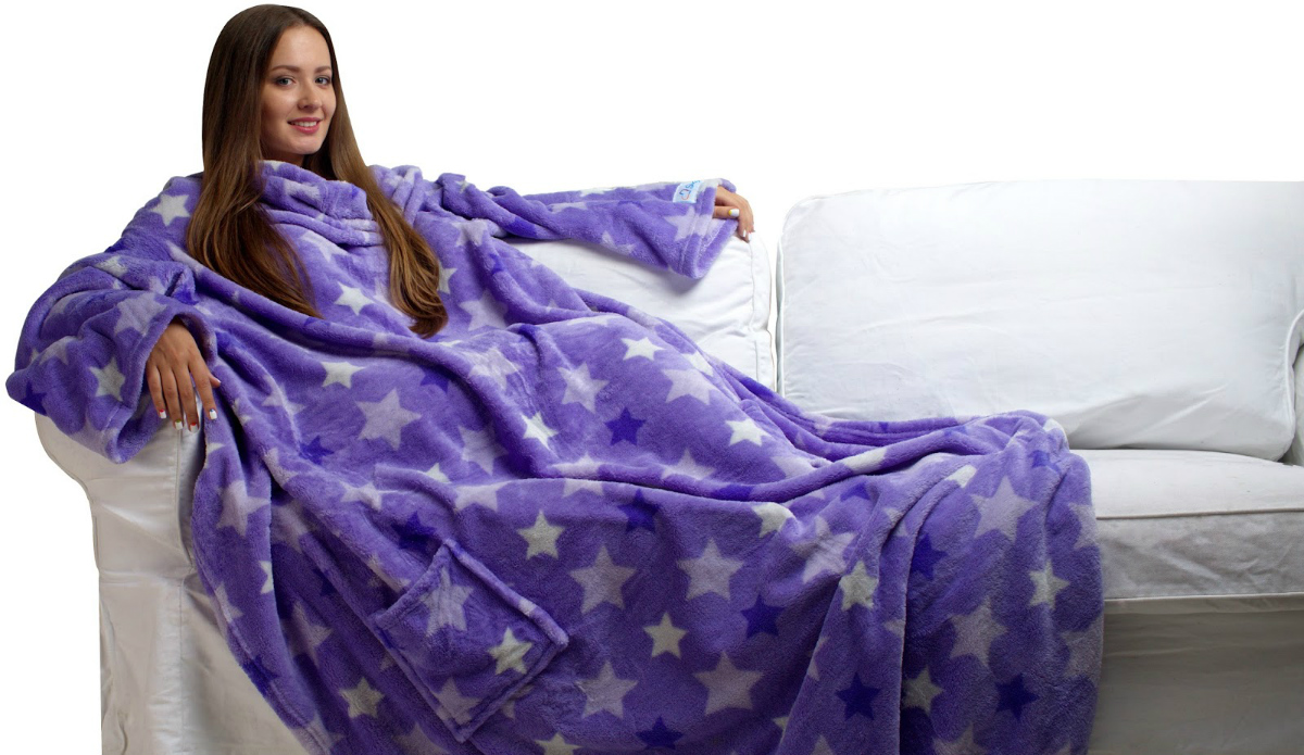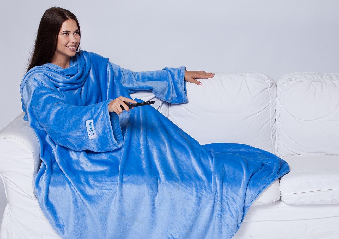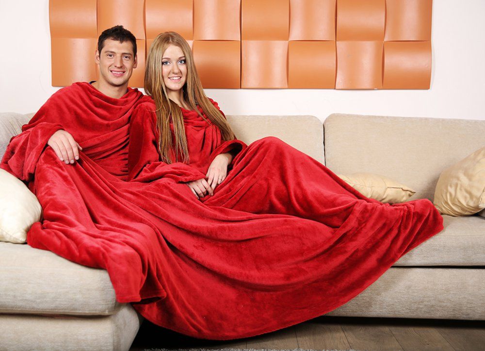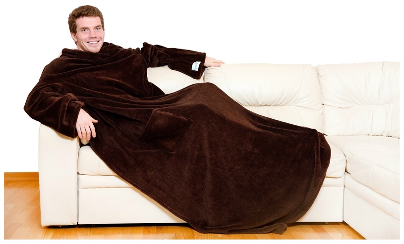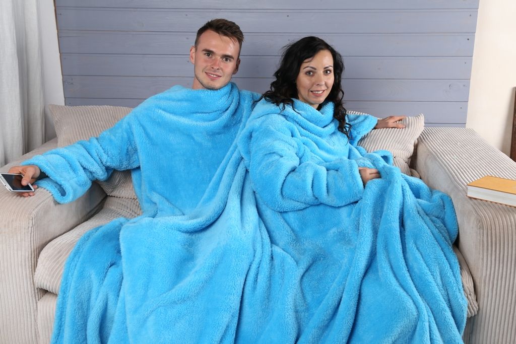 Decken mit Ärmeln, die von vielen Firmen hergestellt werden. Aber die bekanntesten sind die amerikanische Marke Snuggie und die russische Firma Sleepy.