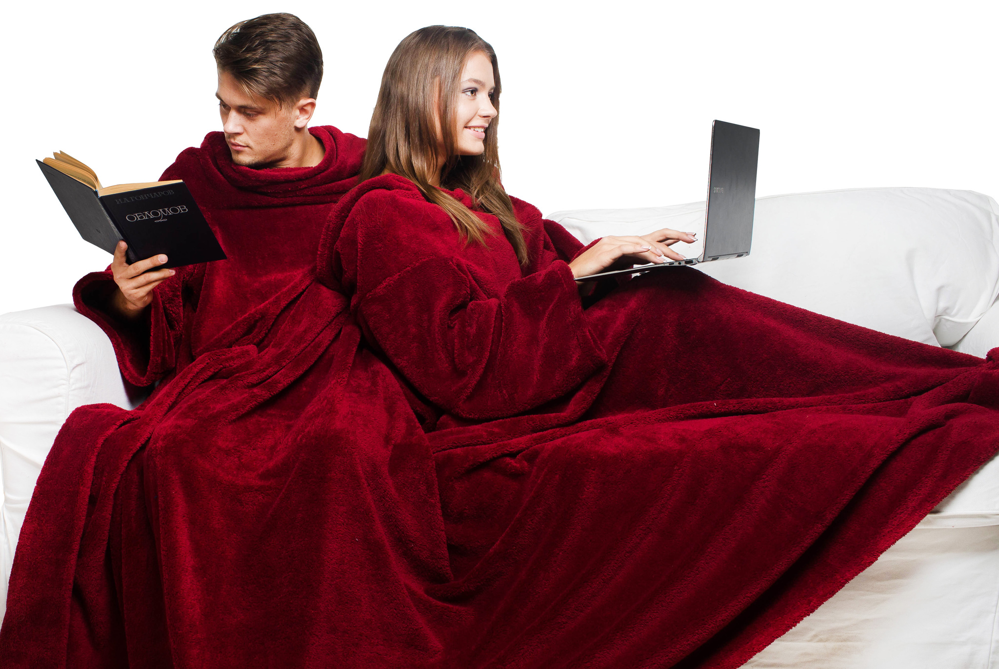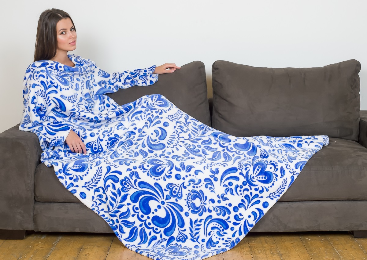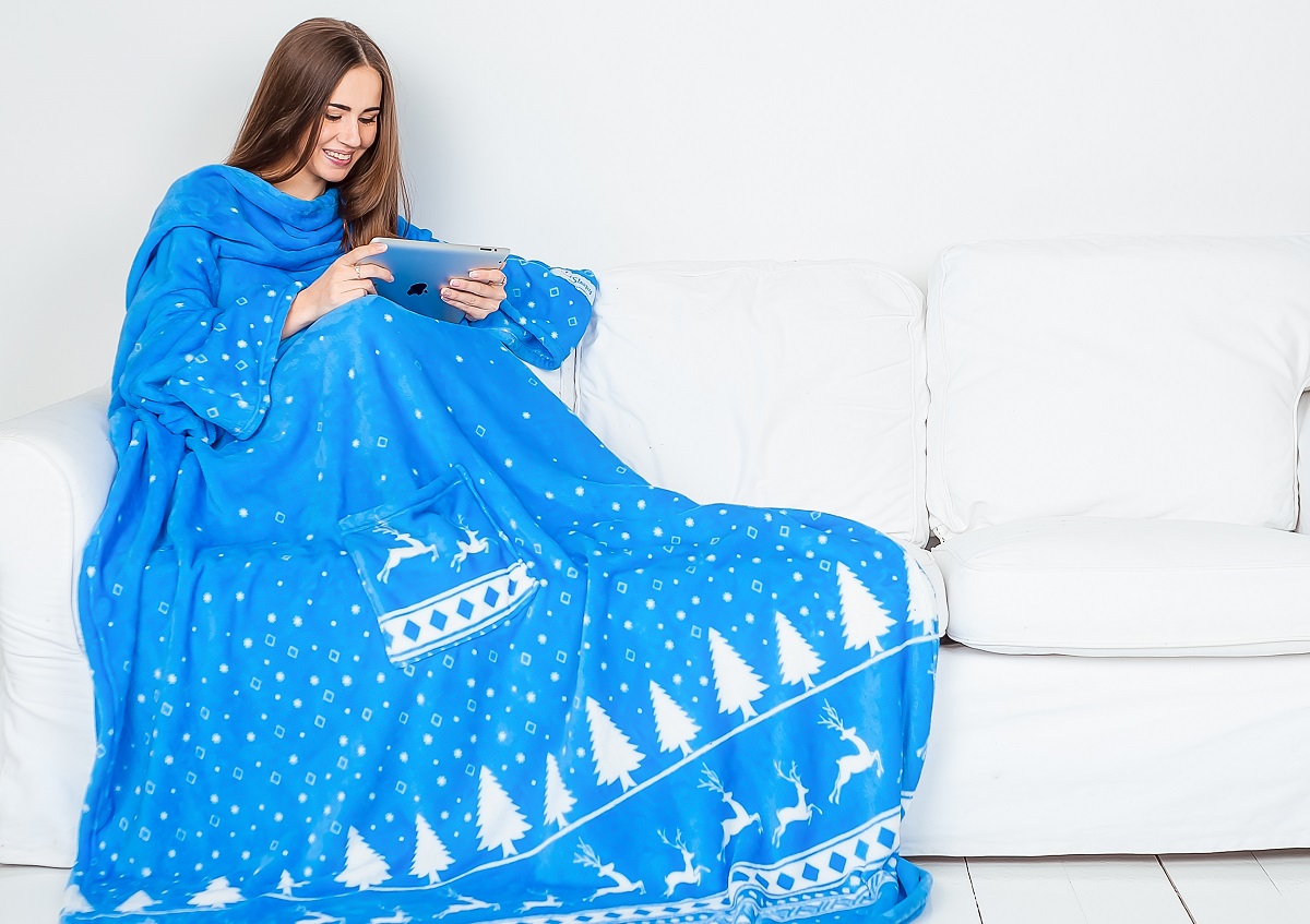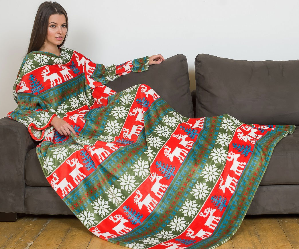 Decken mit Ärmeln, die von vielen Firmen hergestellt werden. Aber die bekanntesten sind die amerikanische Marke Snuggie und die russische Firma Sleepy.