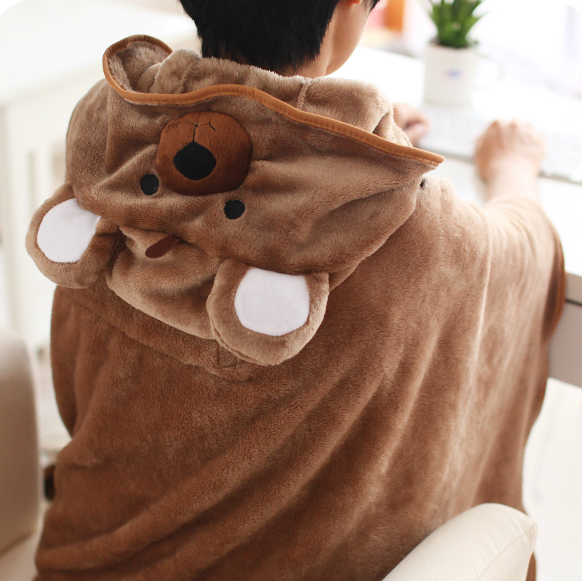 - Funktionalität Das Produkt kann als warmes Pyjama / Kleid verwendet werden, wenn Sie ein Buch lesen oder mit einer Tablette arbeiten, oder Sie können es einfach verstecken, ohne Ihre Hände in Ihre Ärmel zu stecken. In diesem Fall wird es die Rolle einer einfachen Decke spielen.