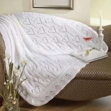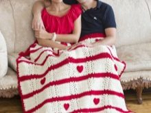 Weichere Wollprodukte sind ideal für kalte Abende in Ihrem Lieblingssessel oder um Ihr Baby für einen Spaziergang in einem Kinderwagen zu decken. Dicht, strukturell auf der Textur der Tagesdecke ist gut als Umhang für das Sofa oder als eine bequeme Matte für ein Kind spielen geeignet. Und durchbrochene, dünne, wie eine Spitzenserviette und fast schwerelose Decken mit einem herzförmigen Muster werden zu einem kühnen Dekorelement.