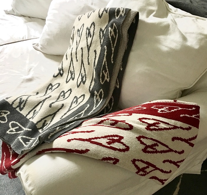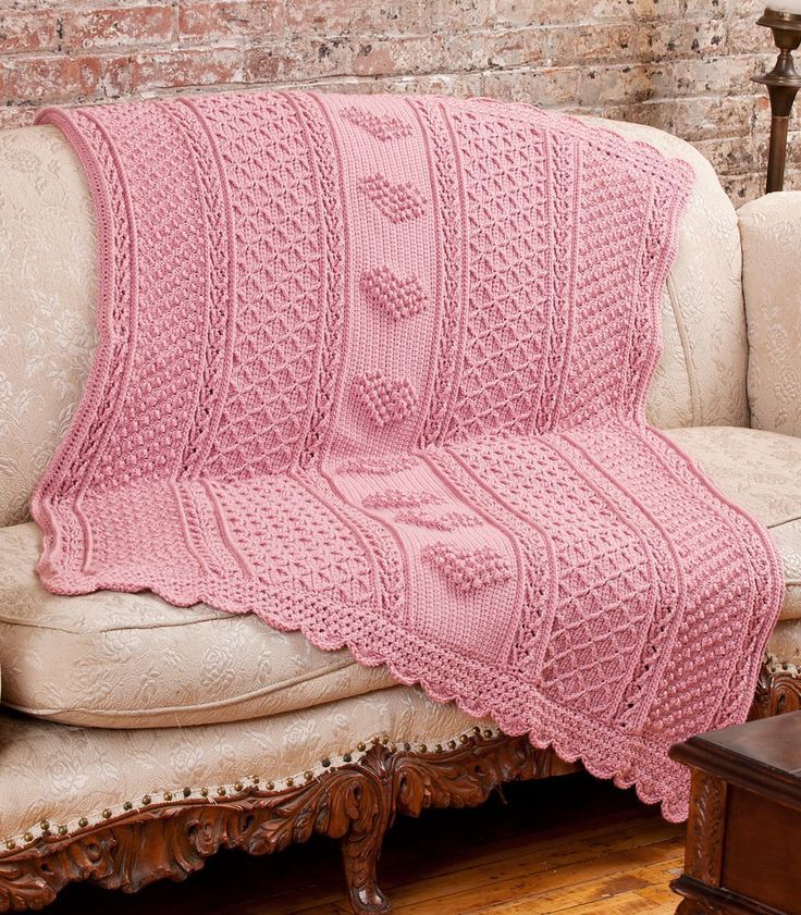 Eine weiche und kuschelige Decke mit Herzen wird ein ausgezeichnetes Geschenk für Neugeborene sein, eine sanfte Offenbarung für Ihre Geliebte und eine großartige Ergänzung für das Design Ihres Interieurs! Die ursprüngliche Form oder Größe des Plaids ist willkommen, aber meistens sind sie nicht wichtig, da es das Muster ist, das die Grundidee des Autors vermittelt.