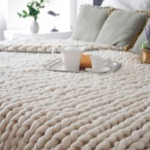 Auch können Decken durch das Herstellungsverfahren unterschieden werden. In diesem Fall handelt es sich um vier Hauptgruppen: Strickdecken (Häkel- und Stricknadeln), Web- und Patchwork-Produkte sowie Wolldecken aus einem Stück Stoff. Es sollte beachtet werden, dass gestrickte Plaids sowohl klein als auch unnatürlich groß gestrickt sind. Modelle des großen Strickens sind eine Trend-Stilentscheidung und werden nicht als Bettdecke verwendet, die verdeckt werden kann, sondern als dekoratives Element des Interieurs.