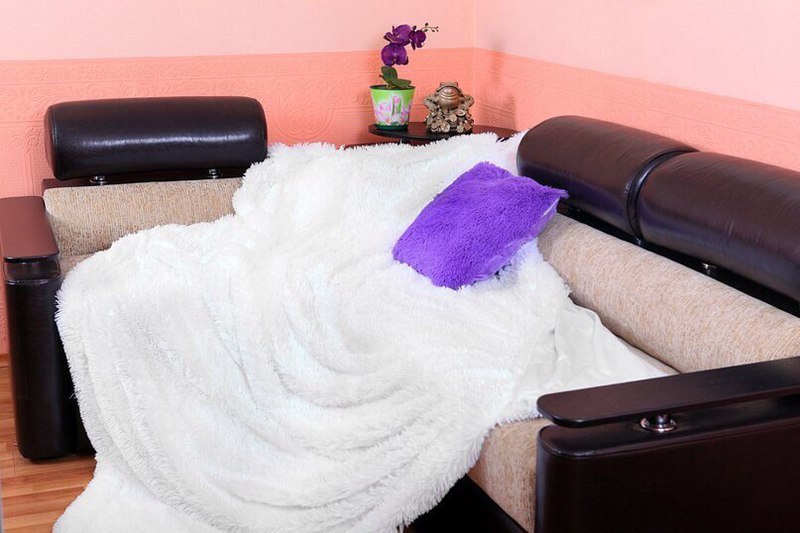 Varianten von kleinen Decken eignen sich zum Abdecken von Stühlen oder kleinen Sofas. Die Größe solcher Produkte reicht von 130x160 cm bis 150x200 cm.