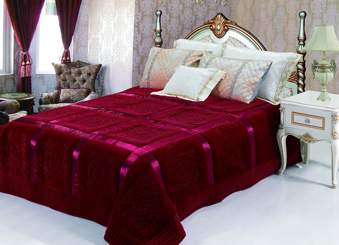 Flauschige Tagesdecken für eineinhalb Betten sind 190x160 cm groß, für Doppelbetten von 200 x 200 cm bis 210x230 cm, die Euro-Maße können etwas größer sein - etwa 220 x 240 cm für Doppelbetten und eineinhalb.