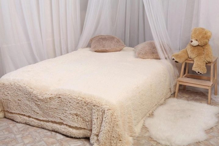 - Kunstpelz Produkte - Eine gute Alternative zu natürlichen Decken. Synthetik hat eine gute Wärmeisolierung und ist viel billiger. Die Vorteile, Hygroskopizität, leichte Reinigung können von den Vorteilen von künstlichen Materialien unterschieden werden.