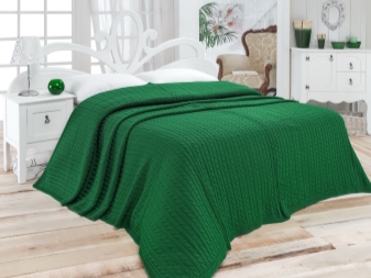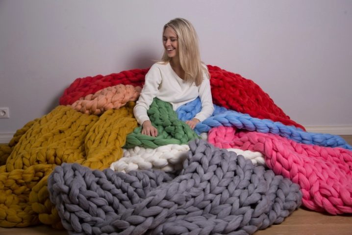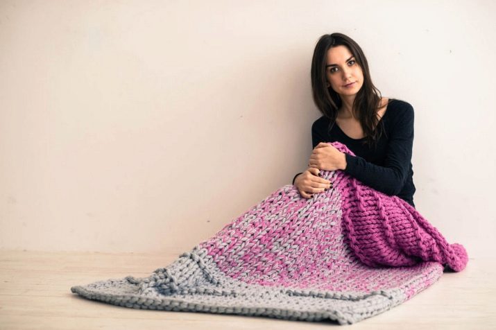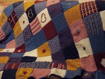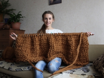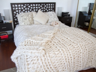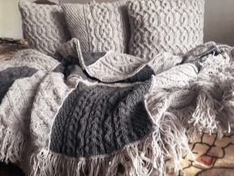 Jede Art von Material zeichnet sich durch sein Ergebnis aus: "Unkraut" -Varianten, die mit Stricknadeln verbunden sind, sind sehr weich, voluminös und angenehm für den Körper. Woll- und Halbwolldecken, ergänzt durch eine Textilunterlage, sind mit gewebten Decken konkurrenzfähig.