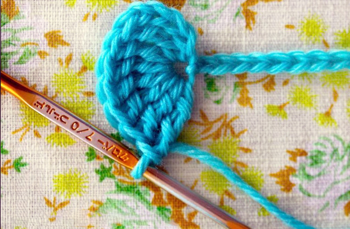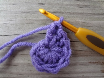 - in einem Kreis (ausgehend von der Kette, Hinzufügen von Schleifen in den Ecken mit jeder neuen Zeile);