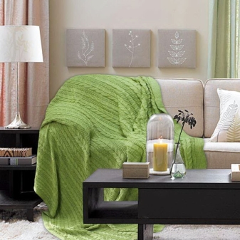 Strickplaids - nicht nur schöne Umhänge. Sie sind multifunktional. Zusammen mit der dekorativen Funktion und der Fähigkeit, frische Farben in das vertraute Design des Raumes zu bringen, sind sie:
