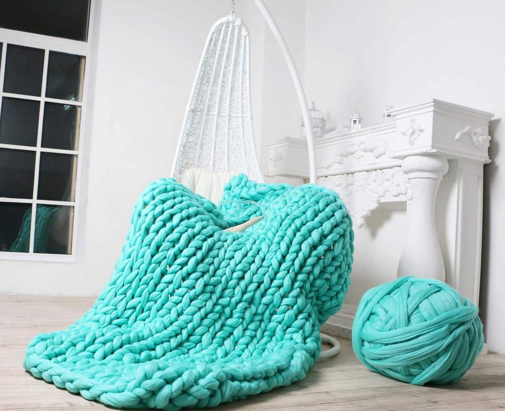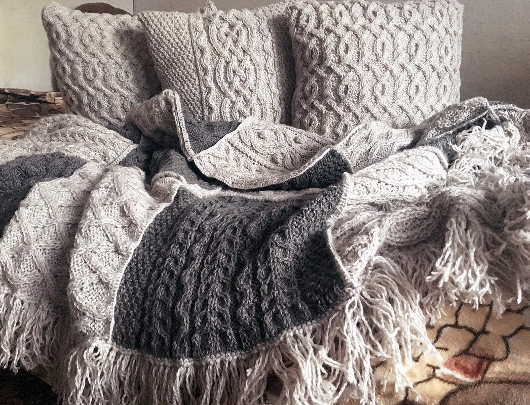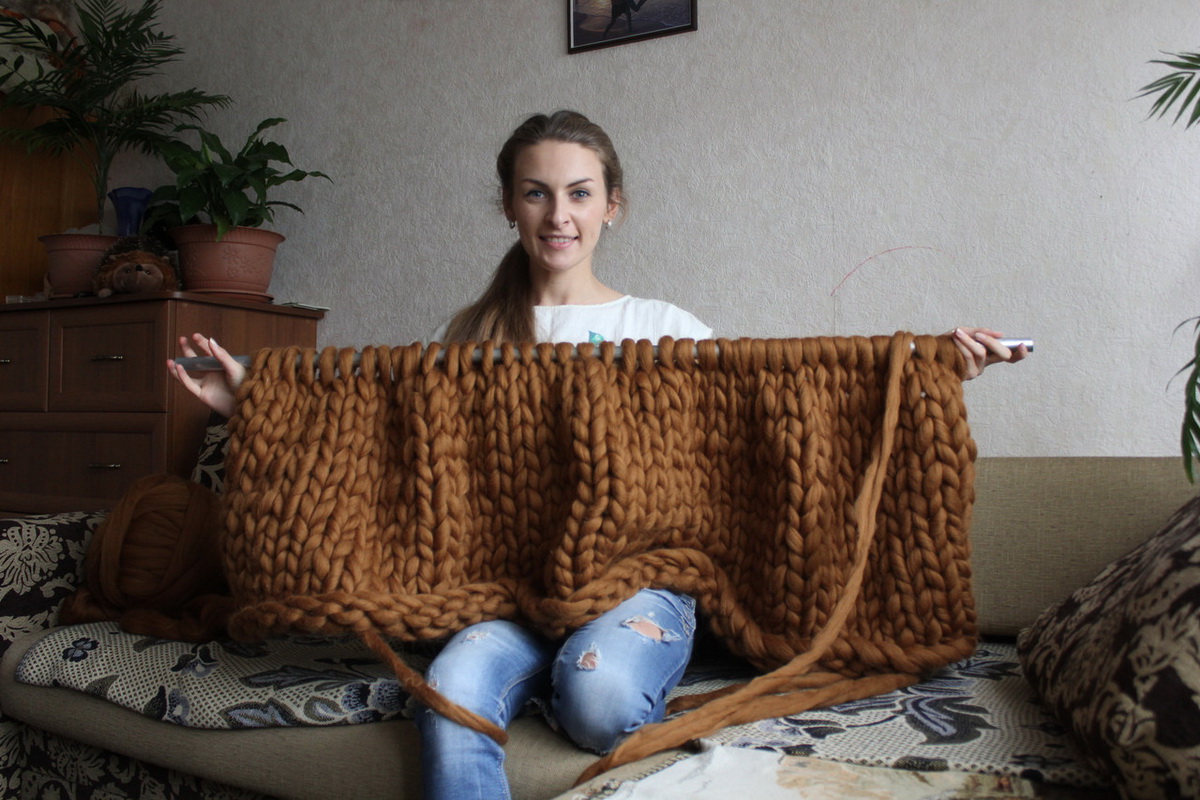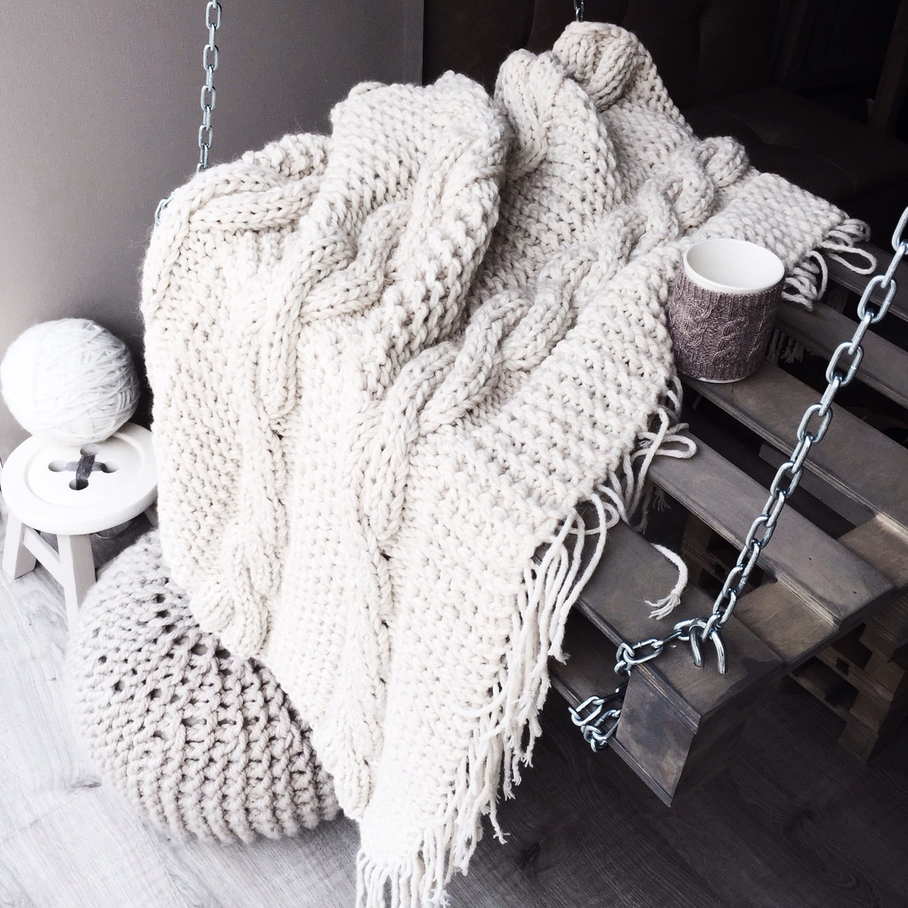 - Strickplaids erfordern eine große Garnmenge in großen Größen und viel Zeit für die Herstellung (zu Hause);