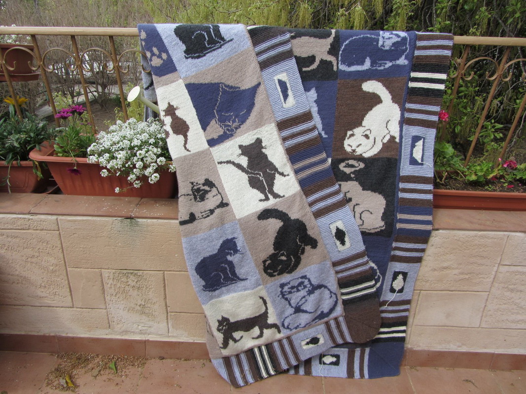 - gestrickte Decke kann nicht ausgeschlagen oder geschüttelt werden, um den Staub loszuwerden (Verformung der Schlaufen und Größe der Leinwand);
