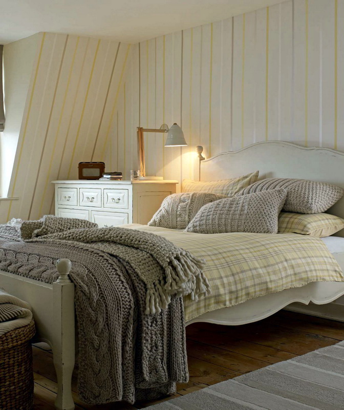 Die Einzigartigkeit von Strickplaids liegt darin, dass sie in jeden Stil des Raumes passen - von Klassik und Minimalismus bis hin zu Glamour und Empire. Die Grundlage der Idee hängt in der Regel vom Muster oder der Farbe ab. Das Strickplaid passt am besten zum Stil: