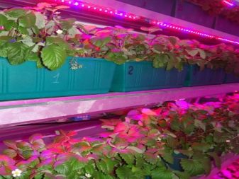 Erdbeeren brauchen langes Licht. In diesem Fall lohnt es sich, Lampen zu kaufen, die unabhängig von der Netzspannung lange leuchten können. Einige Gärtner verwenden Leuchtstofflampen sowie Quecksilberlampen, um ihre Fruchtbildung zu beschleunigen.Sie tragen zu einer Erhöhung der Photosynthese bei, was sich positiv auf das Wachstum der Kultur und die Farbe ihrer Blätter auswirkt.
