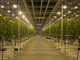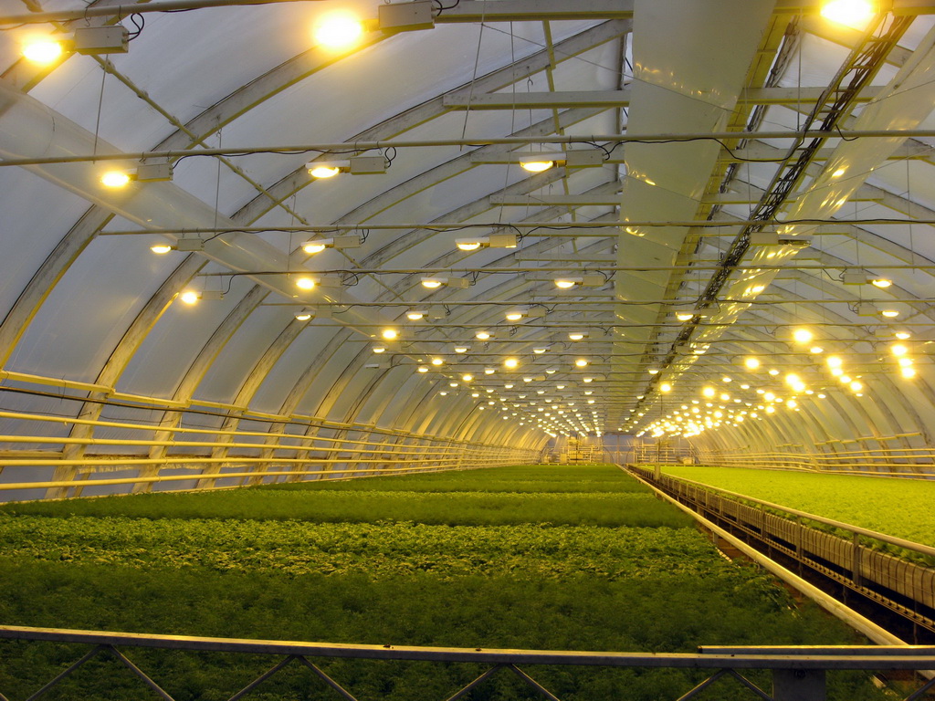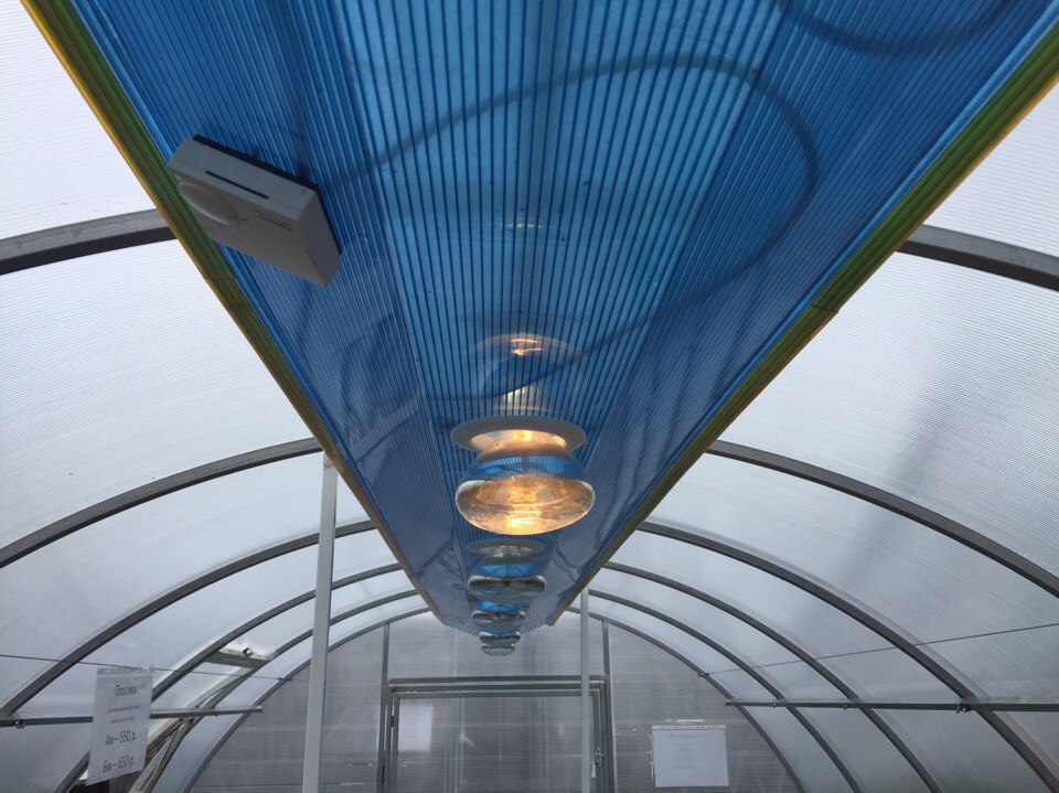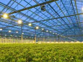 Wenn es um Industrieanlagen geht, werden in solchen Gewächshäusern niemals Glühbirnen verwendet. Aufgrund der hohen Kosten sind die LEDs für sie nicht geeignet. Für solche Gebäude werden Natriumlampen verwendet, die im Lichtspektrum so nah wie möglich am Sonnenlicht liegen.