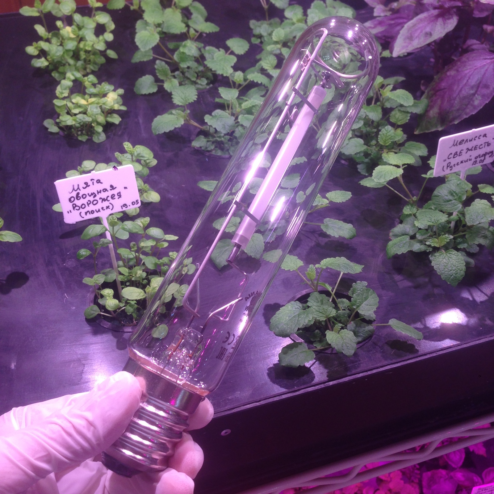 Zum Beispiel wird es nicht empfohlen, sie in das Gewächshaus aufzunehmen, um die Sämlinge von Gurken, Tomaten zu beleuchten. Sie können jedoch Zwiebeln und Petersilie anbauen. Aufgrund des breiten Emissionsspektrums von roten, infraroten und orangenen Strahlen können sie zu Verbrennungen von Gemüsestängeln führen.
