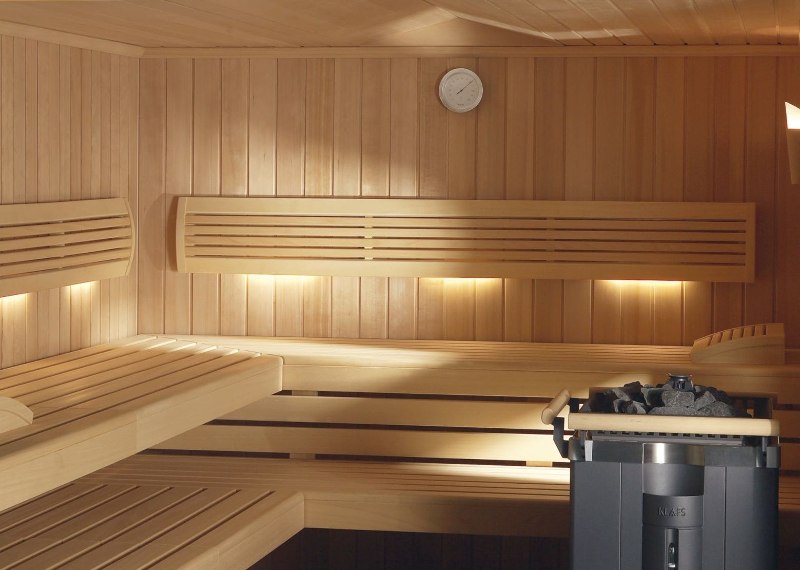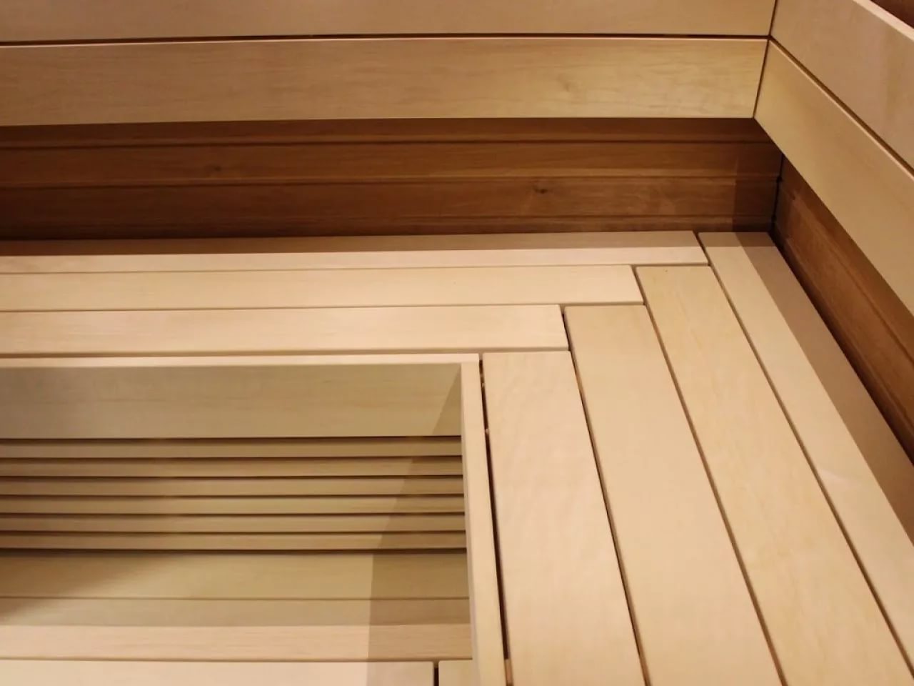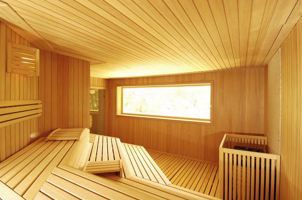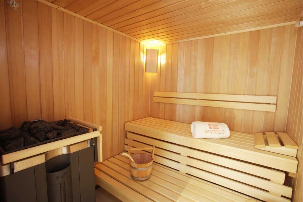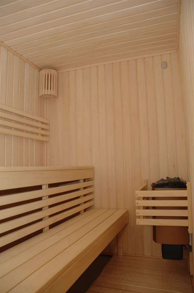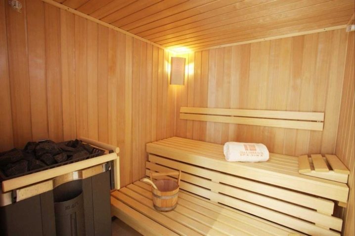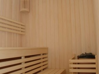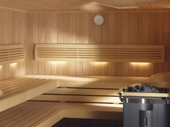 - Das mit Espe getränkte Dampfbad wirkt sehr modern und gemütlich. Leichtes Holz erweitert optisch einen kleinen Raum mit niedriger Decke aufgrund der vertikalen Anordnung der Paneele. Kompetente Beleuchtung betont die Würde der Holzstruktur.