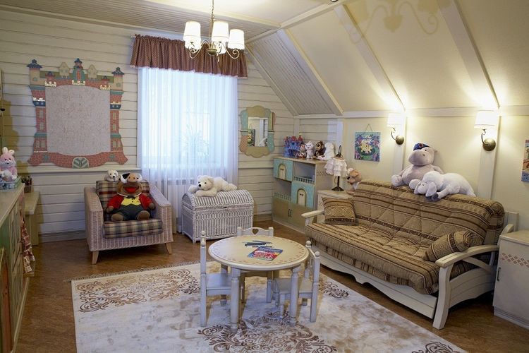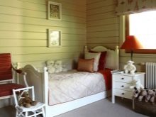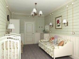 In diesem Fall, wenn die Wände mit bemalten Schindeln in der Gärtnerei ummantelt sind, können Sie diese zusätzlich mit Malereien dekorieren. Mach es einfach und unabhängig, denn heute findest du fertige Schablonen mit interessanten Zeichnungen und Ornamenten.