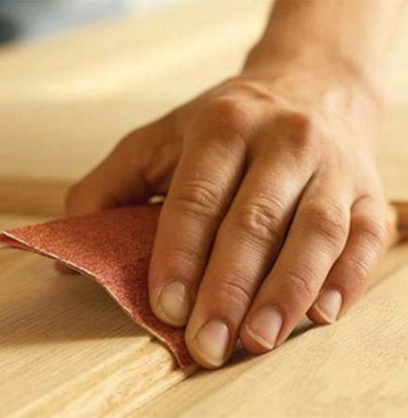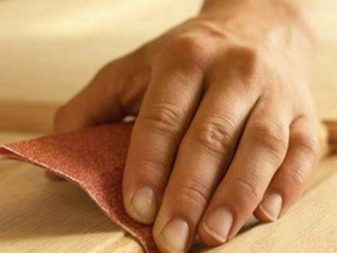 Das Schleifen sollte sorgfältig und genau durchgeführt werden. Um eine perfekt glatte Oberfläche zu erzielen, ist es besser, die Platten in einer kreisförmigen Bewegung zu handhaben. Nur das Teil, das mit Farbe oder Lack beschichtet wird, muss bearbeitet werden.