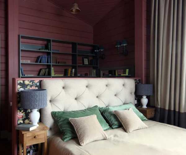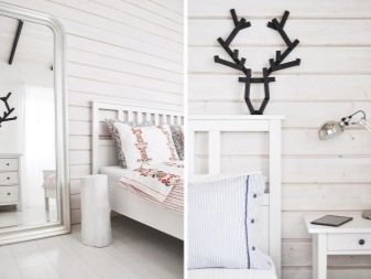 Darüber hinaus verkleiden Sie die Wand Schindel des gleichen Stils, können Sie Betonung mit ihnen in verschiedenen Farben. Wenn wir zum Beispiel von einem Schlafzimmer sprechen, dann kann der Bereich in der Nähe der Lampen und Wandlampen, die sich in der Regel am Kopf befinden, mit hellerer Farbe gestrichen werden. Eine solche Nicht-Standard-Lösung wird es ermöglichen, nicht nur visuell den Raum zu erweitern, sondern auch die Aufmerksamkeit auf andere Objekte, Accessoires zu lenken, die ihn vom Bett ablenken.