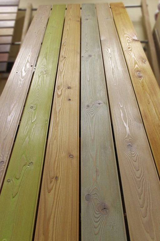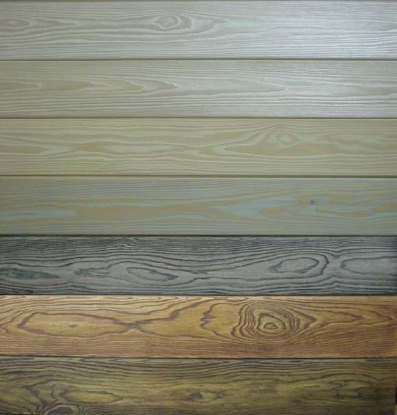 Anfänglich ist das Brett in einer dunklen Farbe und nach dem zweiten ausgewählten Farbton gemalt. Ein ungewöhnlicher Effekt wird aufgrund der Tatsache erzielt, dass die erste Farbschicht leicht in die unebene Textur des Holzes absorbiert wird, wodurch alle Unregelmäßigkeiten und Risse erscheinen können. Es ist auch durchaus möglich, die Paneele mit Patina zu überziehen, was ebenfalls sehr originell aussieht.