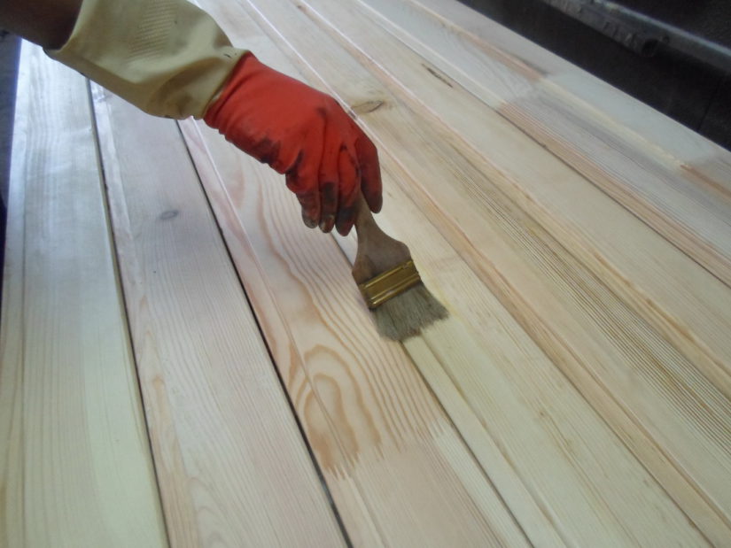 Die ausgewählte Mischung sollte mit einem Pinsel oder einer Rolle aufgetragen werden. Eine kleine Menge des Produkts wird mit einem kurzen Hub mit sanften Bewegungen auf die Platte aufgetragen, wonach sie schattiert werden kann, wodurch jegliche Flecken vermieden werden und die Oberfläche gleichmäßig wird. Als nächstes müssen Sie das Produkt vollständig trocknen lassen. Um die Farbe und Textur zu fixieren, können Sie ein spezielles Wachs oder verschiedene Öle verwenden.