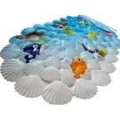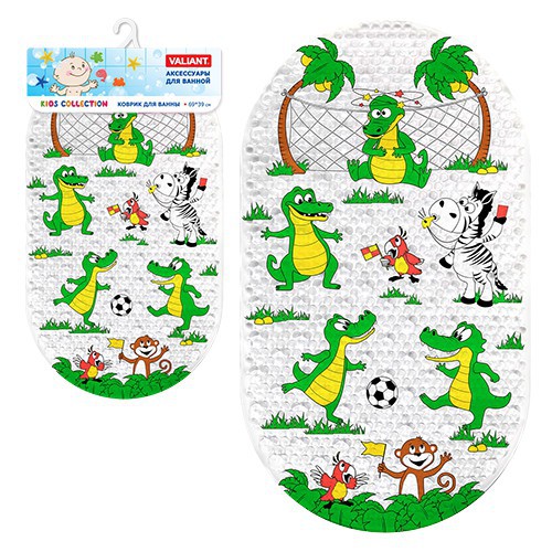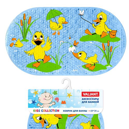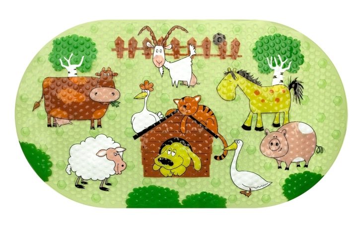 Berühmte Marke für die Herstellung von Kinderteppichen "Tapfer" bietet seinen Kunden Mini-Matten, die die Silhouetten von Tieren und Pflanzen in Form wiederholen. Helle Farben ziehen die Aufmerksamkeit des Kindes auf sich und machen den Badevorgang zu einem interessanten Zeitvertreib.