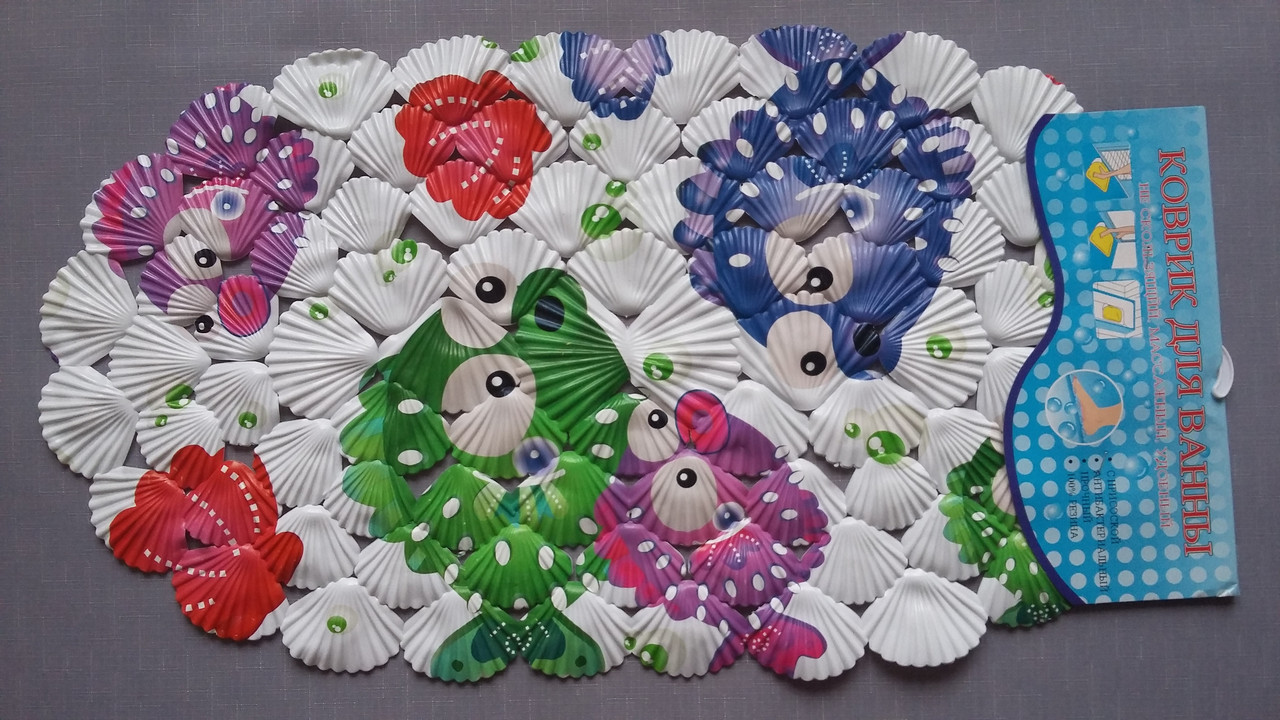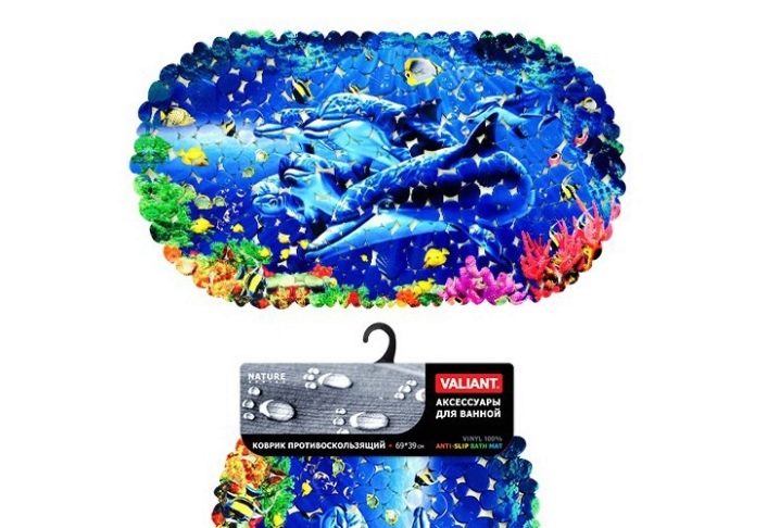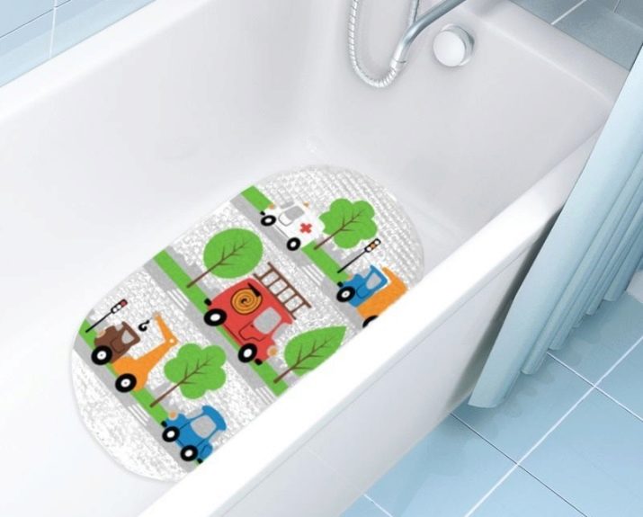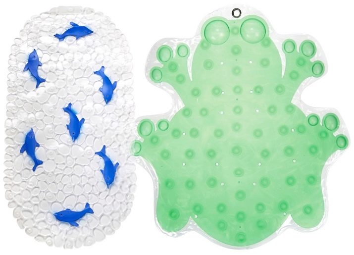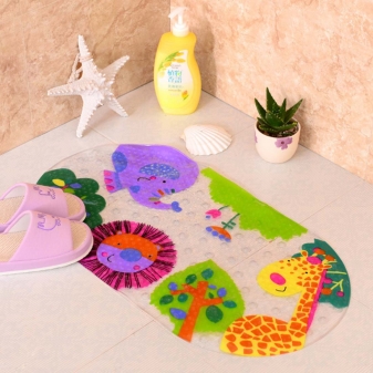 Produkte aus diesem Material zeichnen sich auch durch Anti-Rutsch-Effekt aus.Für die Montage auf dem Boden des Badezimmers, auf dem Teppich gibt es spezielle Saugnäpfe. Aufgrund des bunten Designs sind solche Produkte bei Käufern beliebt.