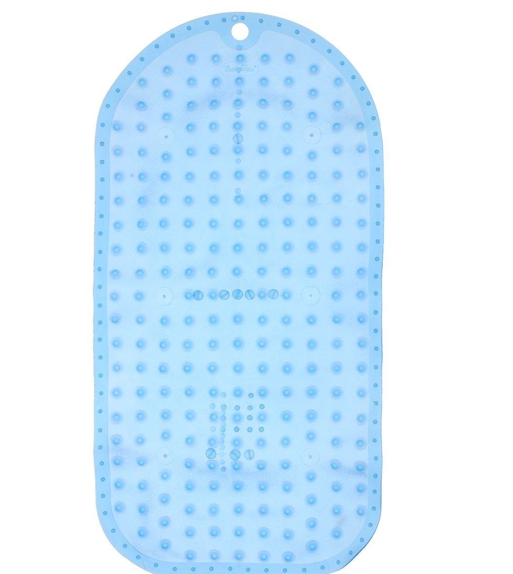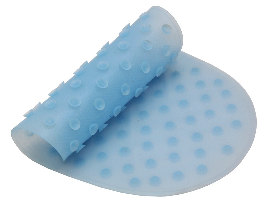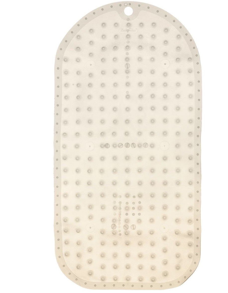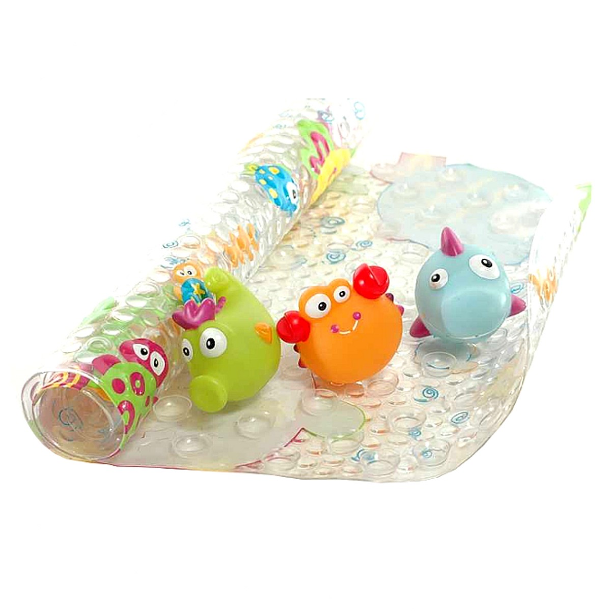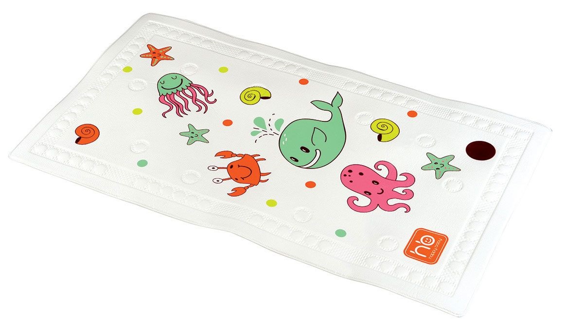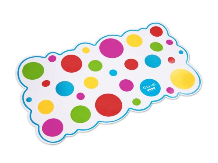 Berühmter Hersteller "BabyOno" verwirklicht Badeteppiche aus elastischem Gummi. Dank flacher Spikes entsteht ein Anti-Rutsch-Effekt, und bunte Töne lassen jedes Kind lächeln.