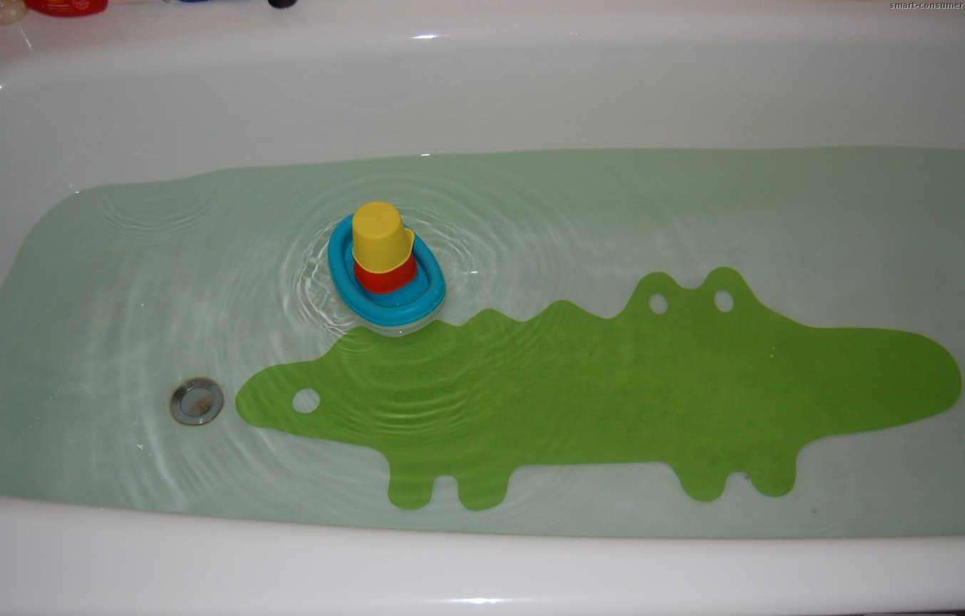 Andere Marke - "Ikea." Sie bietet ihren Kunden Teppiche für Kinder in Form von Krokodilen an. Modelle haben eine holprige Oberfläche mit Saugnäpfen auf der Rückseite, die es dem Material nicht erlauben, entlang des Bodens des Acrylbades zu gleiten.