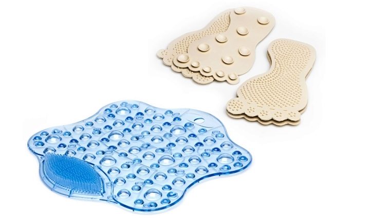 - Massageprodukte. Auf der Oberfläche befinden sich spezielle Ausstülpungen, durch die die Füße massiert werden. Zusätzlich zur Massage hat dieser Teppich eine rutschfeste Oberfläche, die auch zu mehr Sicherheit beiträgt;