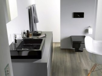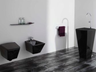 - Es ist notwendig, dass die schwarze Toilette in Harmonie mit anderen Sanitärelementen steht. Ansonsten wird das gesamte Konzept des Badezimmerdesigns gebrochen. Dies verursacht zusätzliche Kosten im Zusammenhang mit der Erneuerung der Wasserleitungen, wenn die Toilette mit einem Badezimmer kombiniert wird.