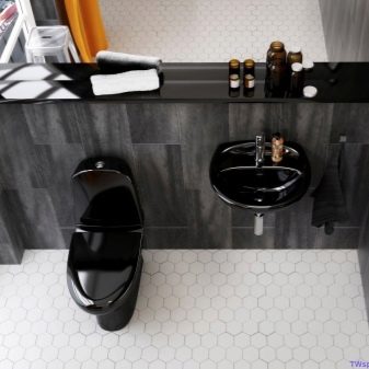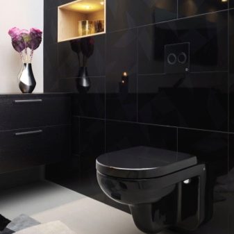 Wenn Sie eine schwarze Toilette für Räume kaufen, die Wände oder Böden, die in dunklen Farbtönen gestrichen sind, wird es notwendig sein, zusätzliche Reparaturen, sonst wäre die Atmosphäre in einem solchen Raum nicht die günstigste.