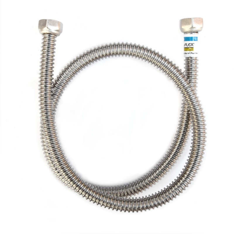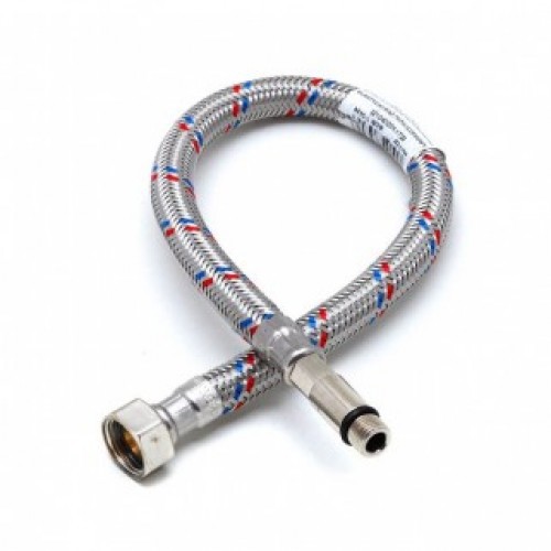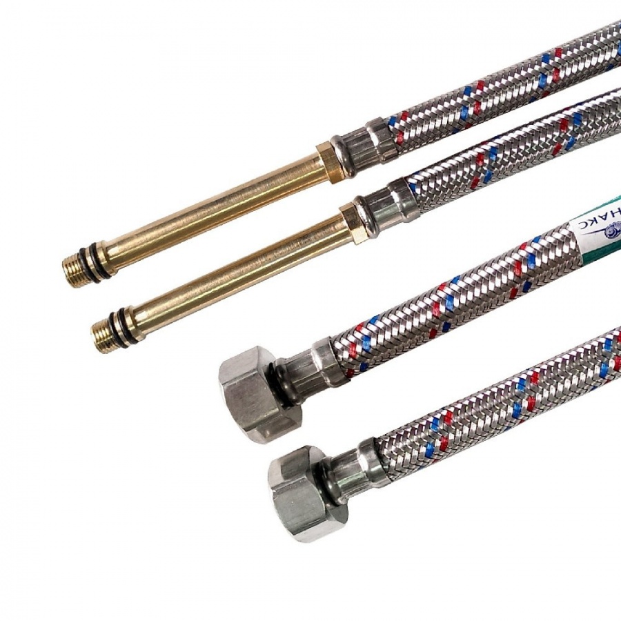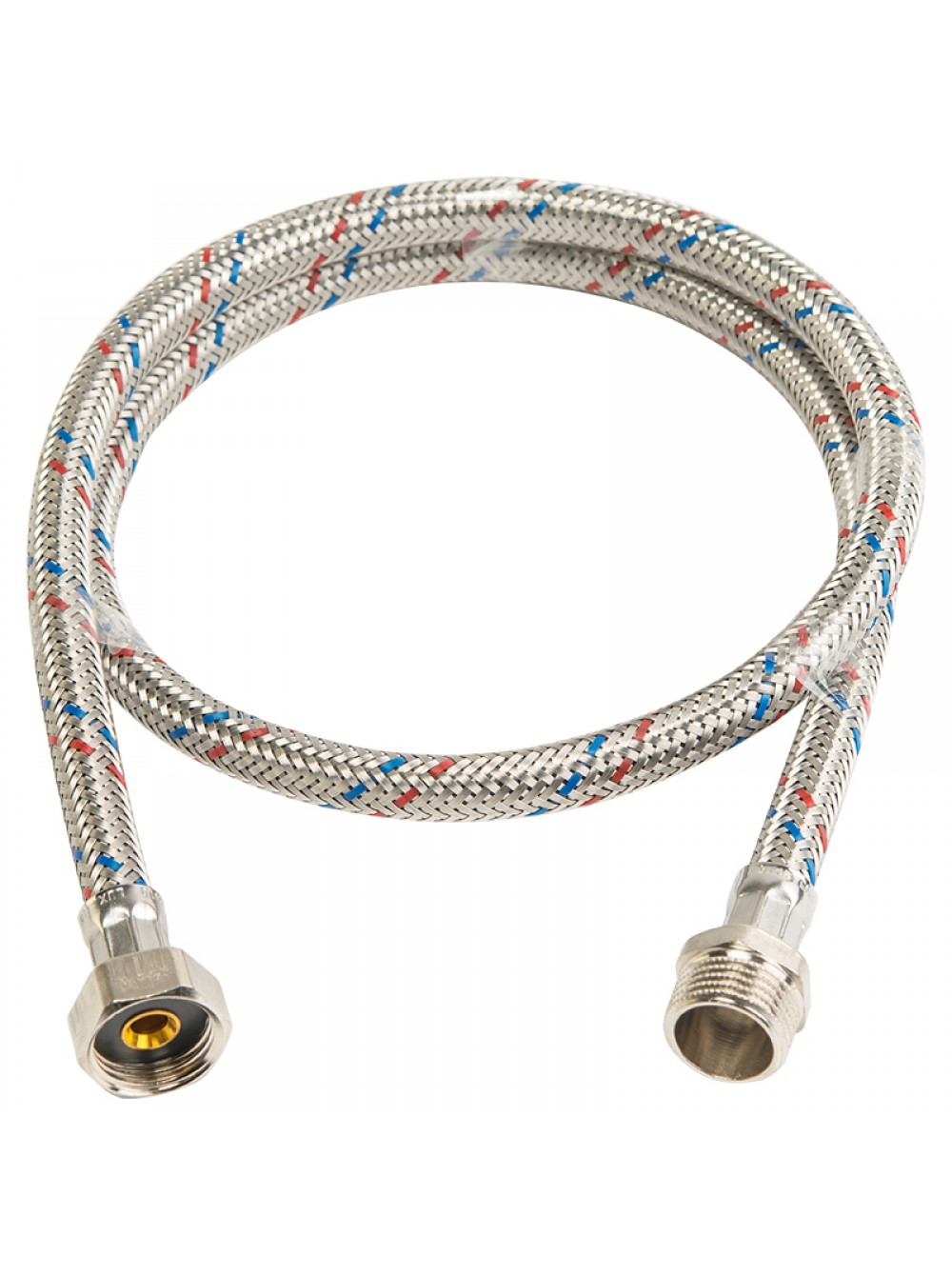 Das flexible System besteht aus einem flexiblen flexiblen Schlauch, der oben mit einer Metallhülle bedeckt ist. Seine Länge kann von 30 cm bis zu 5 m reichen, an den Enden des Liners befinden sich Muttern und Fittings mit Gummidichtungen, die am Hauptrohr und an den Sanitärelementen oder Haushaltsgeräten befestigt sind. Auf dem Metallgeflecht sind Farbmarkierungen angebracht, die den Anwendungsbereich des Schlauches anzeigen. Nur heißes Wasser sollte durch den rot gekennzeichneten Schlauch fließen, ausschließlich kaltes Wasser durch den blau markierten Schlauch und die doppelte Farbe zeigt die Vielseitigkeit des Produkts an.