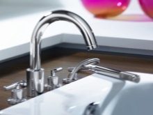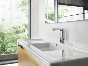 - Diplomarbeit Diese Serie präsentiert interessante Designs für eine Spüle mit Wasserdrossel. Dies spart erheblich Kosten für die Wasserversorgung. In dieser Kollektion gibt es Modelle mit Bodenventil, mit einziehbarer Kette. Für die Dusche gibt es eine Option mit einem automatischen Schalter, der bequem in der Wand montiert ist.