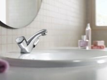 Wie installiert man den Wasserhahn im Badezimmer, siehe Video.