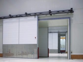Meistens werden solche Systeme am Eingang des Territoriums von verschiedenen Unternehmen, Fabriken, Lagern und Hangars installiert. In solchen Strukturen gibt es eine starke Führung, die auf dem oberen Balkenboden befestigt ist. Die Klappen dieser Systeme werden mit speziellen Rollwagen aufgehängt und bewegt. Was den unteren Teil der Leinwand betrifft, dann gibt es keine Unterstützung darin.