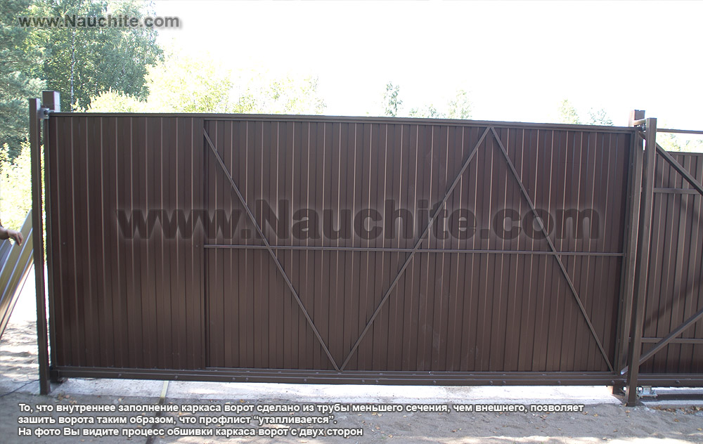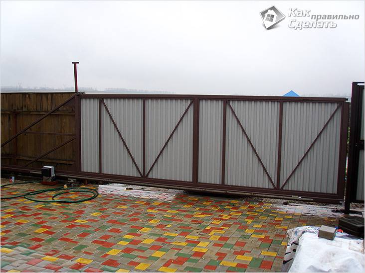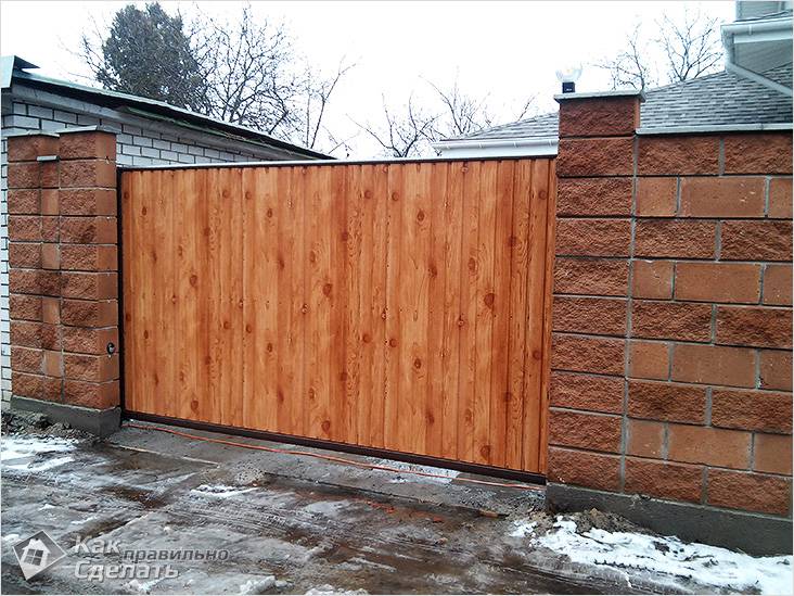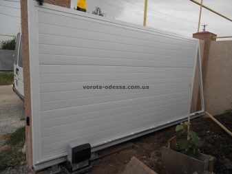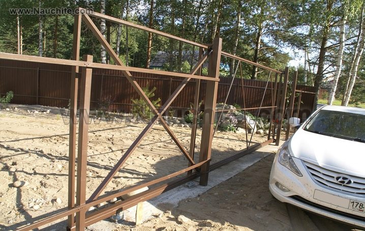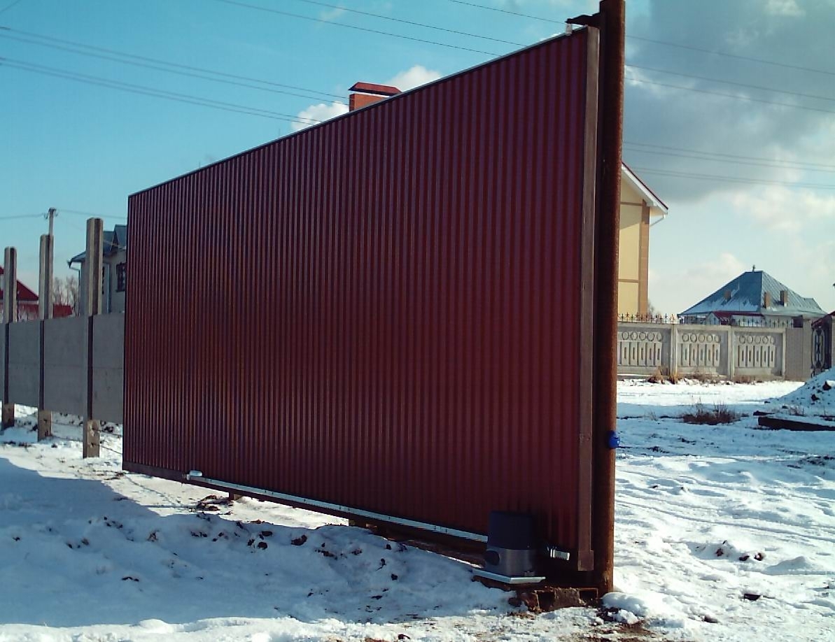 Wenn alle Installationsarbeiten korrekt durchgeführt wurden, wird der Verlauf solcher Tore weich und glatt sein, und sogar ein zerbrechliches Mädchen kann mit ihnen fertig werden. Viele Leute waren erfreut, dass es im Winter nicht notwendig ist, den Schnee in der Öffnung der Schiebetore zu reinigen.