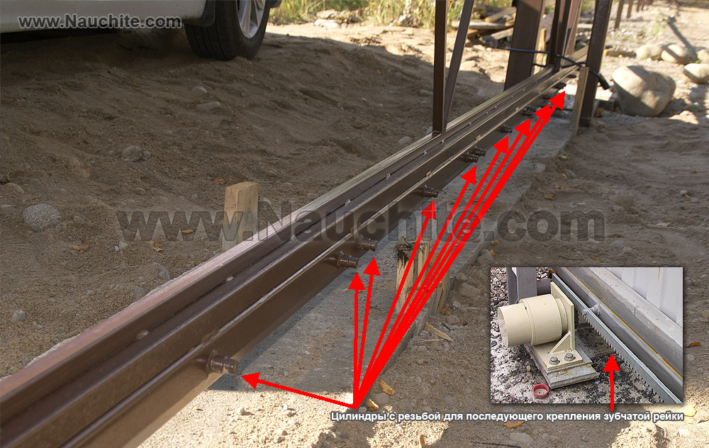 Jetzt können Sie fortfahren, den Mechanismus des Tores zu installieren. Das Rollensystem muss auf dem Kanal installiert werden. Die Befestigung dieses Teils erfolgt mit Hilfe des Seitenteils. Dann wird das Rollensystem auf spezielle Wagen gesetzt. Danach sollte die Leinwand entlang des Zauns installiert und verschweißt werden. Wie für die Fänger und beweglichen Rollen sollten sie auf den Lagersäulen befestigt werden. Zur Befestigung dieser Teile können Sie Schweißen, Dübel oder Klemmen verwenden.