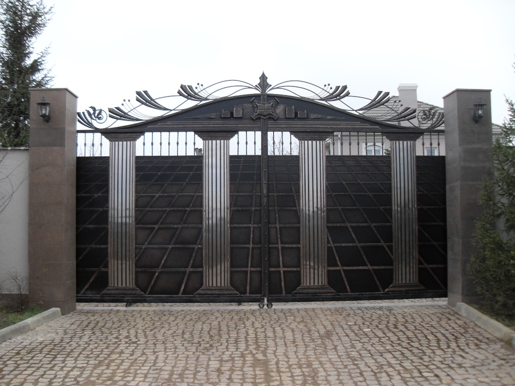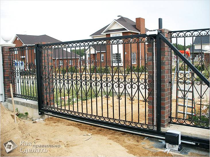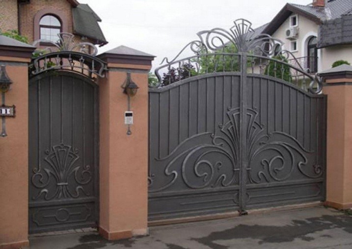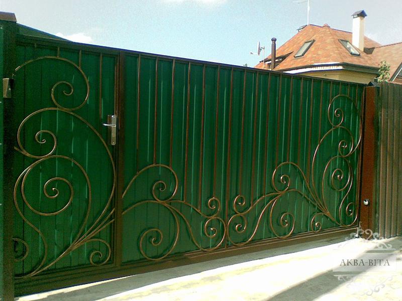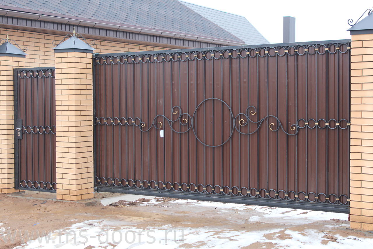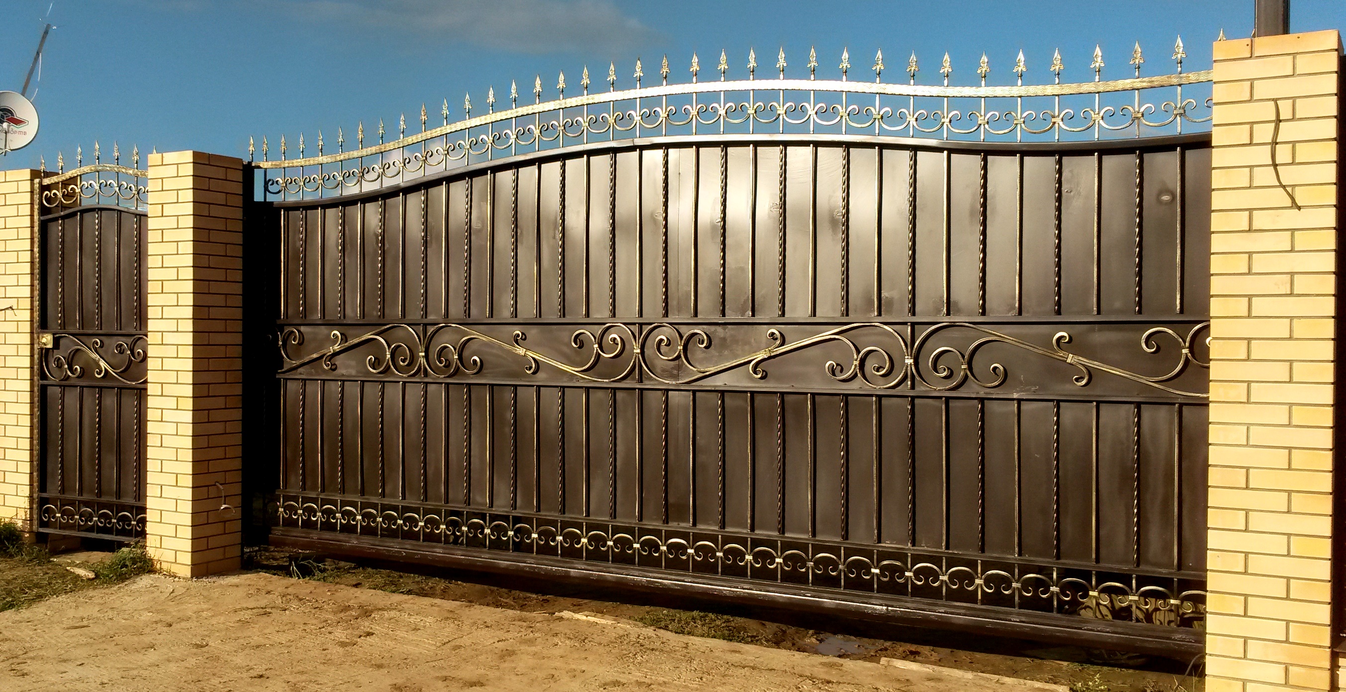 - Schmieden.Geschmiedete Teile können aus einem einfachen Schiebetor ein Kunstwerk machen. Der Hauptnachteil solcher Produkte ist ihr hoher Preis. Nicht jeder Verbraucher kann sich solch ein "Vergnügen" leisten.