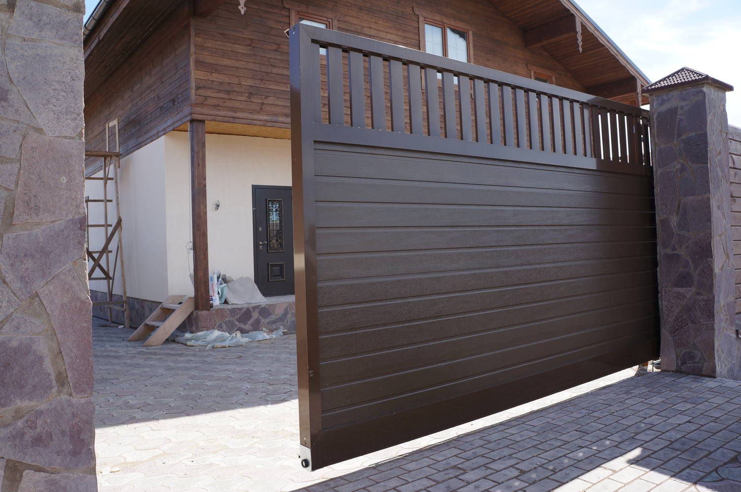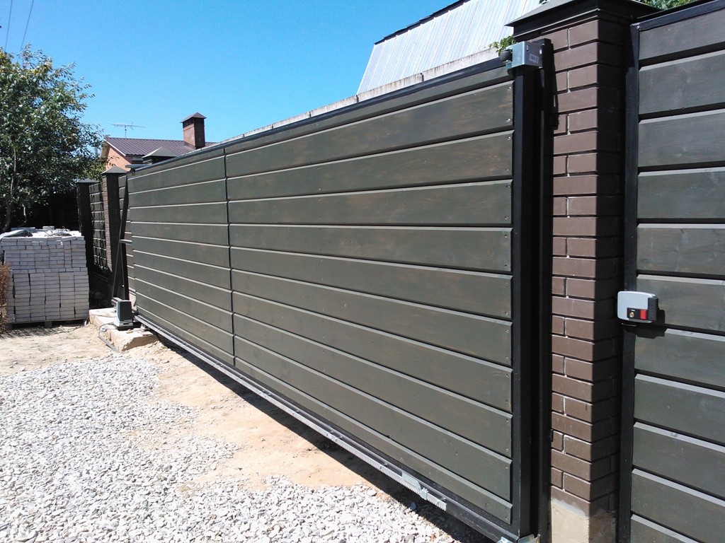 Sie kaufen schöne und praktische Schiebetore für Luxusvillen und kleine Landhäuser. Solche Designs sehen in vielen Einstellungen organisch aus, es ist nur notwendig, die gewünschte Farbe und Abschirmung richtig auszuwählen.